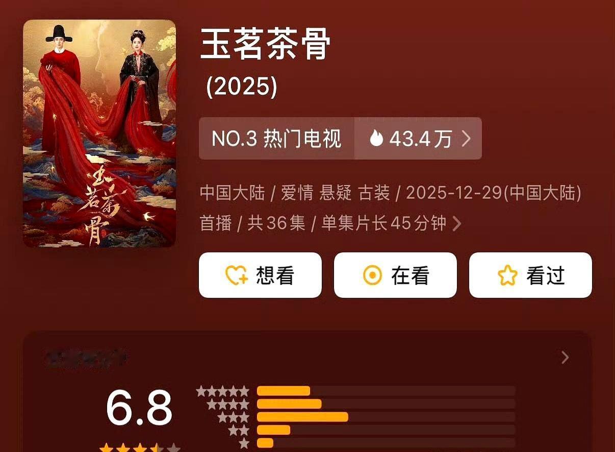 娜扎一抬眼,古偶就赢了 开播前,谁也没想到6.8分的《玉茗茶骨》能把央视八套的《逍遥》按在地上。侯明昊还是那张脸,台词少年感都在线,区别只在女主。 古力娜扎演茶王之女,冷脸往那一站,观众直接信了:这就是能撑起家族的女掌柜。镜头扫过茶园,她抬眼一瞥,弹幕齐刷刷“稳了”。酷云峰值0.4286%,芒果TV内部指标达标,越南热搜挂着三天,靠的就是这股“她真能干大事”的劲儿。 转头看《逍遥》,谭松韵演少女肖瑶。35岁硬拗灵动,前期还能靠演技兜住,后期仙侠打架,年龄感直接穿帮。豆瓣掉到6.4,观众一句话:出戏。不是不美,是不像。 古偶早过了只看脸的阶段。观众要的是代入感:女主一出场,你就得信她活在那个朝代。娜扎这次把高冷演成了落地的事业批,滤镜再厚也挡不住“她真能干”气场。谭松韵吃亏在气质太邻家,现代职场能封神,古装少女就差口气。 市场数据摆在这:能让观众信的女主,直接带飞整部剧。演员想长红,先得找对赛道。娜扎这次押对宝,谭松韵回头扎进西装职场剧,也算及时止损。 古偶的生死线越来越清晰:男主稳住基本盘,女主得让观众心甘情愿跟着她进戏。信不信,比美不美贵一千倍。