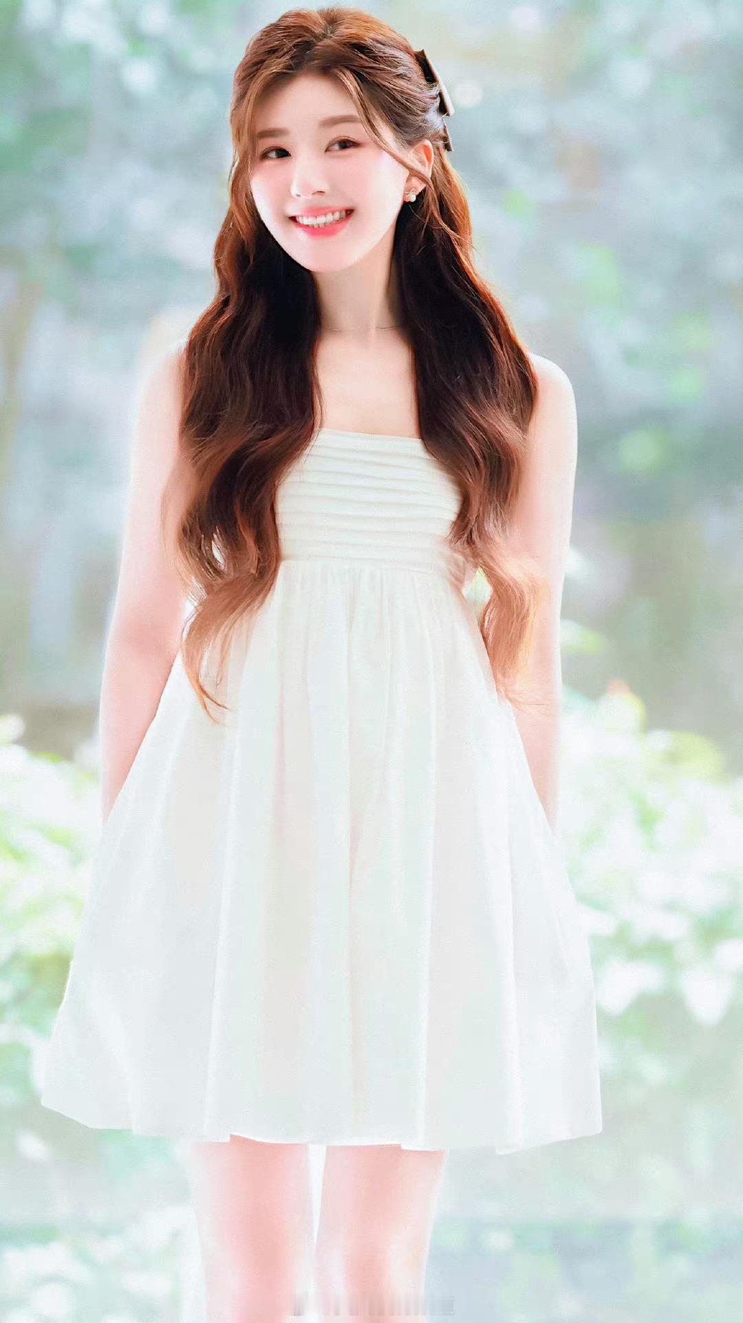 蓝盈莹白色优雅抹胸礼服裙造型