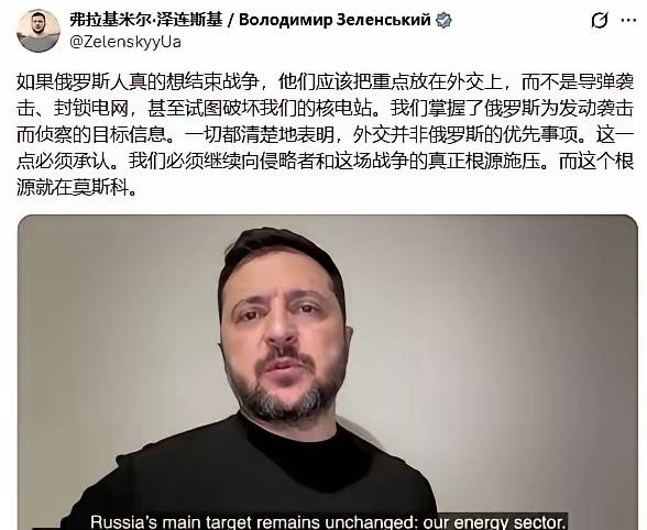 泽连斯基挺不住了!他在社交媒体发文称:如果俄罗斯人真的想结束战争,他们应该把重点放在外交上,而不是导弹袭击、封锁电网,甚至试图破坏我们的核电站。我们掌握了俄罗斯为发动袭击而侦察的目标信息。一切都清楚地表明,外交并非俄罗斯的优先事项。这一点必须承认。我们必须继续向侵略者和这场战争的真正根源施压。而这个根源就在莫斯科。2023谈判,准备签协议,结果俄撤兵了,乌反悔,并且永远不跟俄罗斯谈判是不是你干的,这回旋镖。如果泽连斯基真心想结束战争,他早就这么做了。但他却甘心被欧盟利用,充当欧洲抗俄的马前卒。 还有网友发文说,军事上能进一步,根本不会考虑外交的。为了人民的平安和命,怎么就不能就不能妥协呢?乌克兰是嘛门子受害者?任何人都不能因为自己的利益,把别人置于死地,乌克兰就这样干了。 还有网友发文说,如果乌克兰加入北约,北约就可以在乌克兰部署导弹,就能几分钟内打击莫斯科,时间短得目前世界任何雷达预警时间都不够,这是让俄罗斯死,那么,俄罗斯让乌克兰死有什么问题?就算按国际法讲,也有域外自卫的搞法,当年古巴导弹危机也是此类问题。所以,乌克兰就是咎由自取,活该!耍无赖是吧!还有网友发文说,你邻居把刀尖对着你家门,你反击就是搞事情?有人觉得你要对他不利,把你身体外全布置刀尖围起来,你撞上是自杀?乌克兰就是在干这种事,他们就要当这个刀尖,到底谁在搞事情?斯连斯基 泽连斯基发布会 泽连斯基禁谈令 赖连斯基 泽伦斯基危机 泽连斯基腐败 泽连斯基征兵令