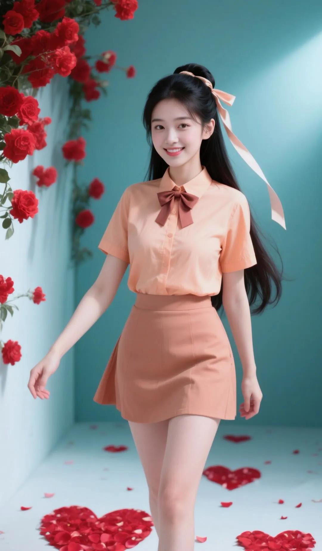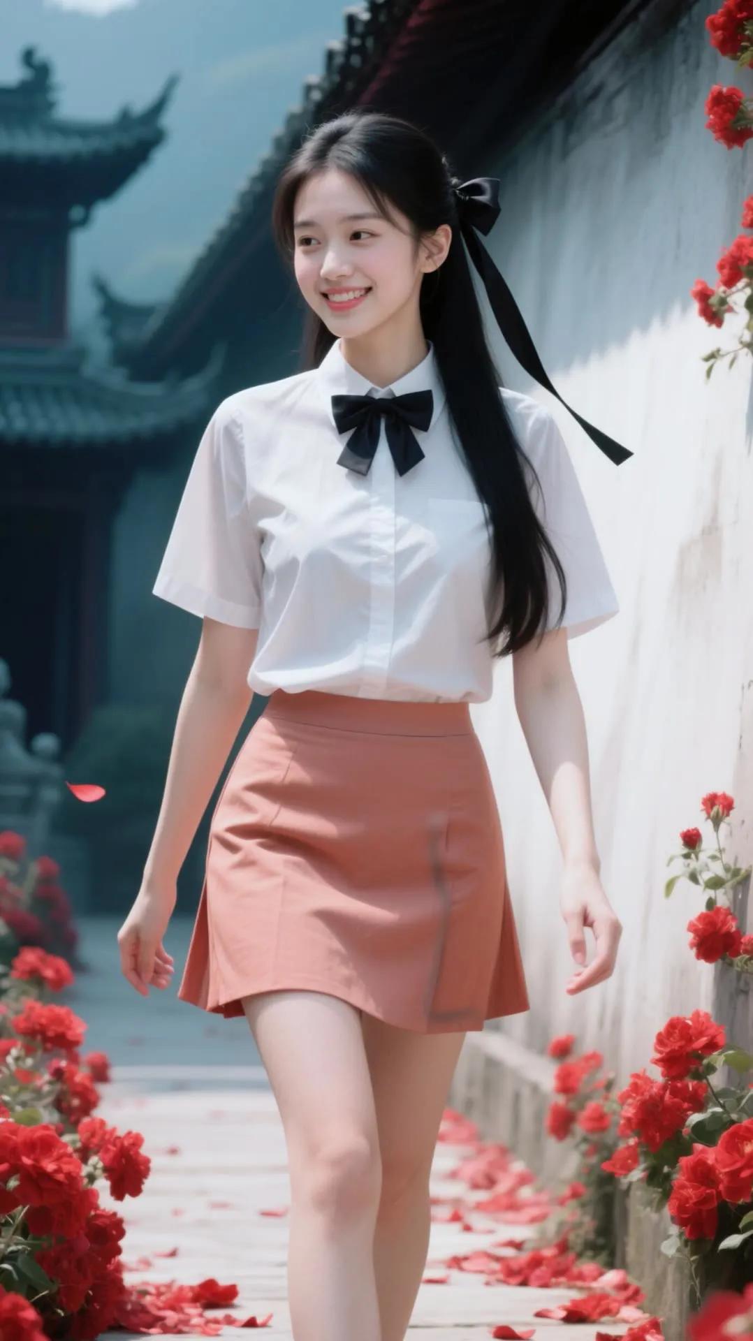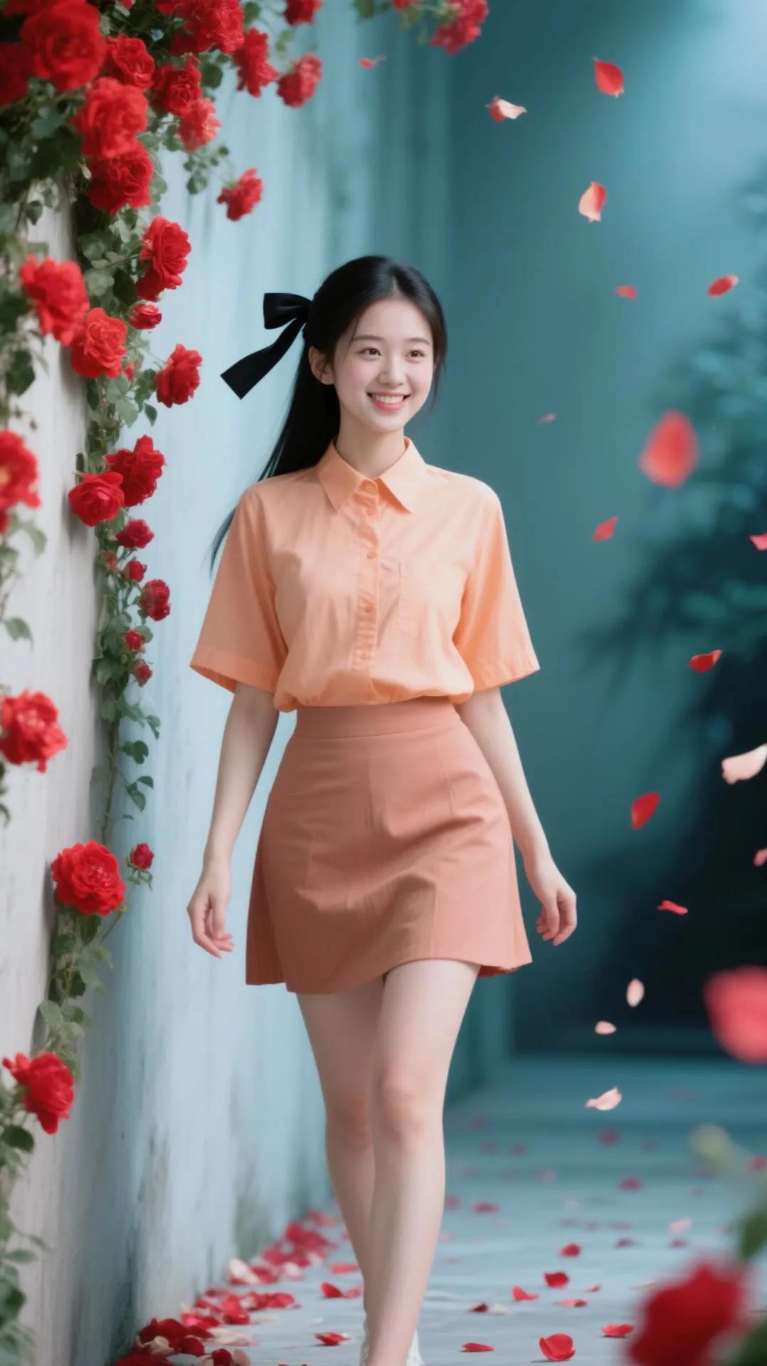 春风拂面笑,花影映人娇气质美女 清纯甜美