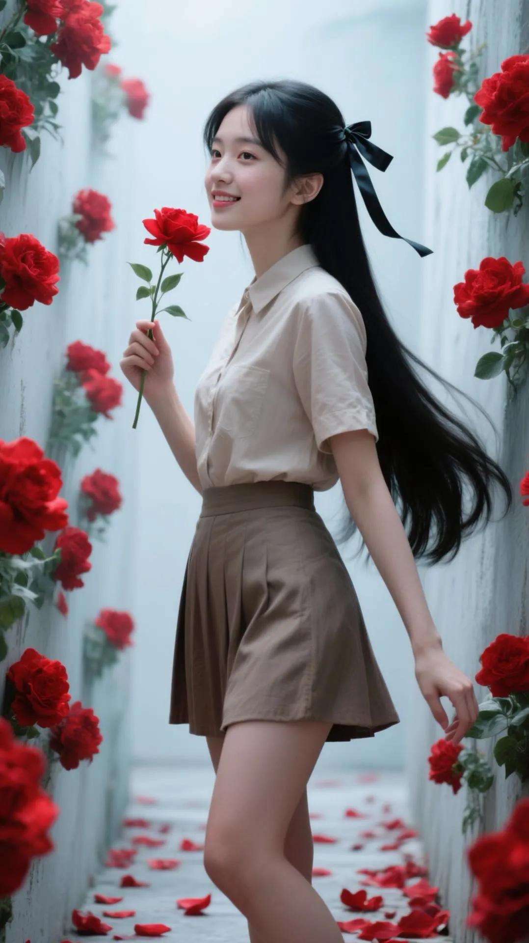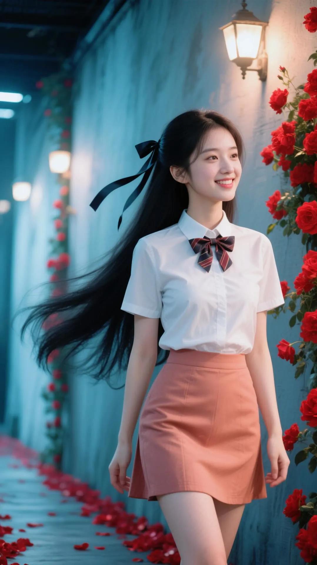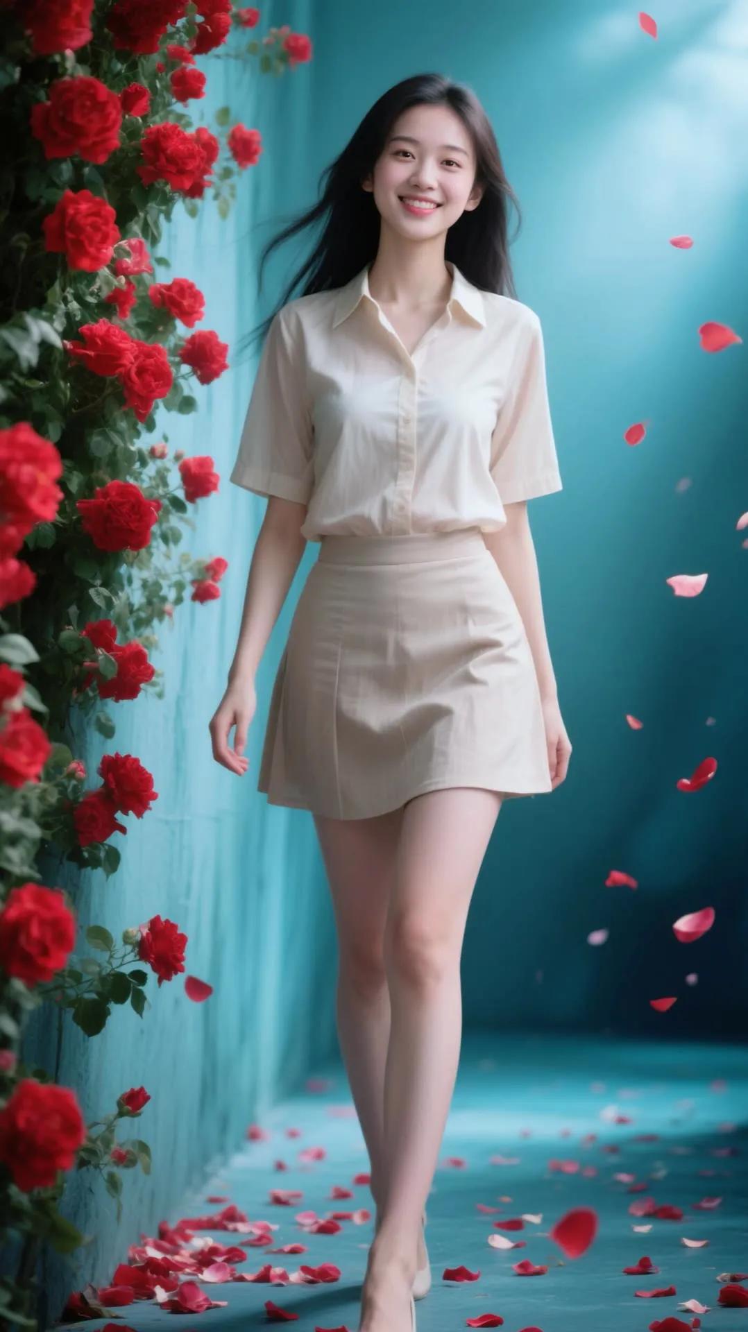 春风拂面笑,花影映人娇气质美女 清纯甜美
