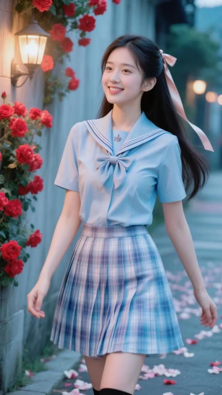 粉色蝴蝶结衬衫,搭灰粉花纹裙,脚踩同色系高跟鞋,这样穿优雅又显气质。