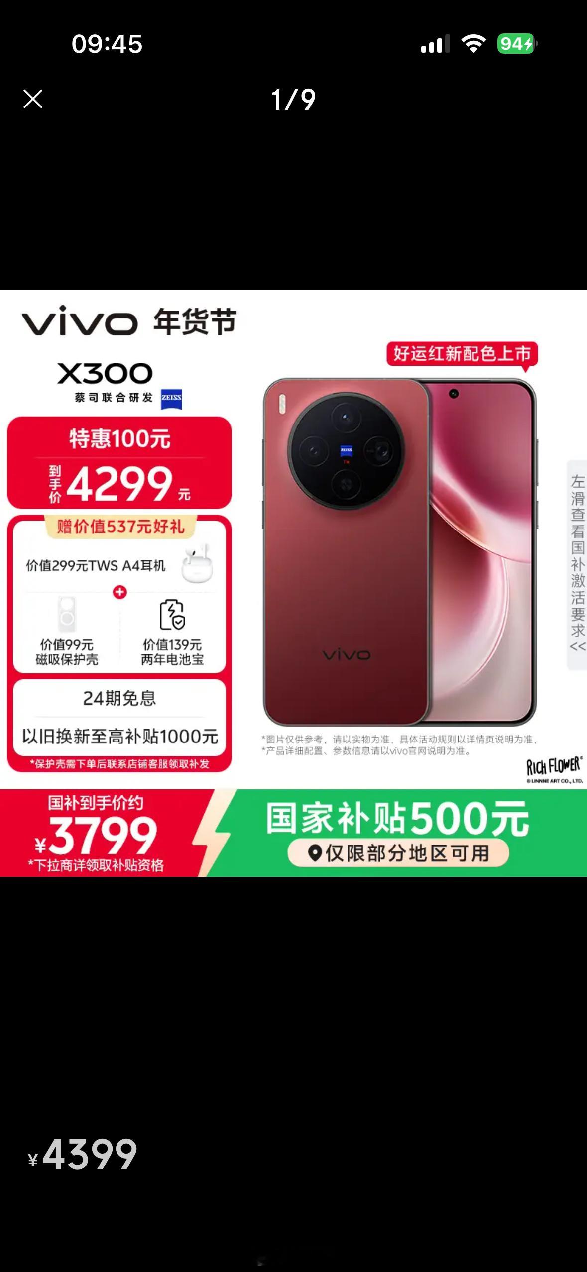vivo X300新颜色好运红12+256 429916+256 469912+512 499916+512 5299支持国补15%新机来了
