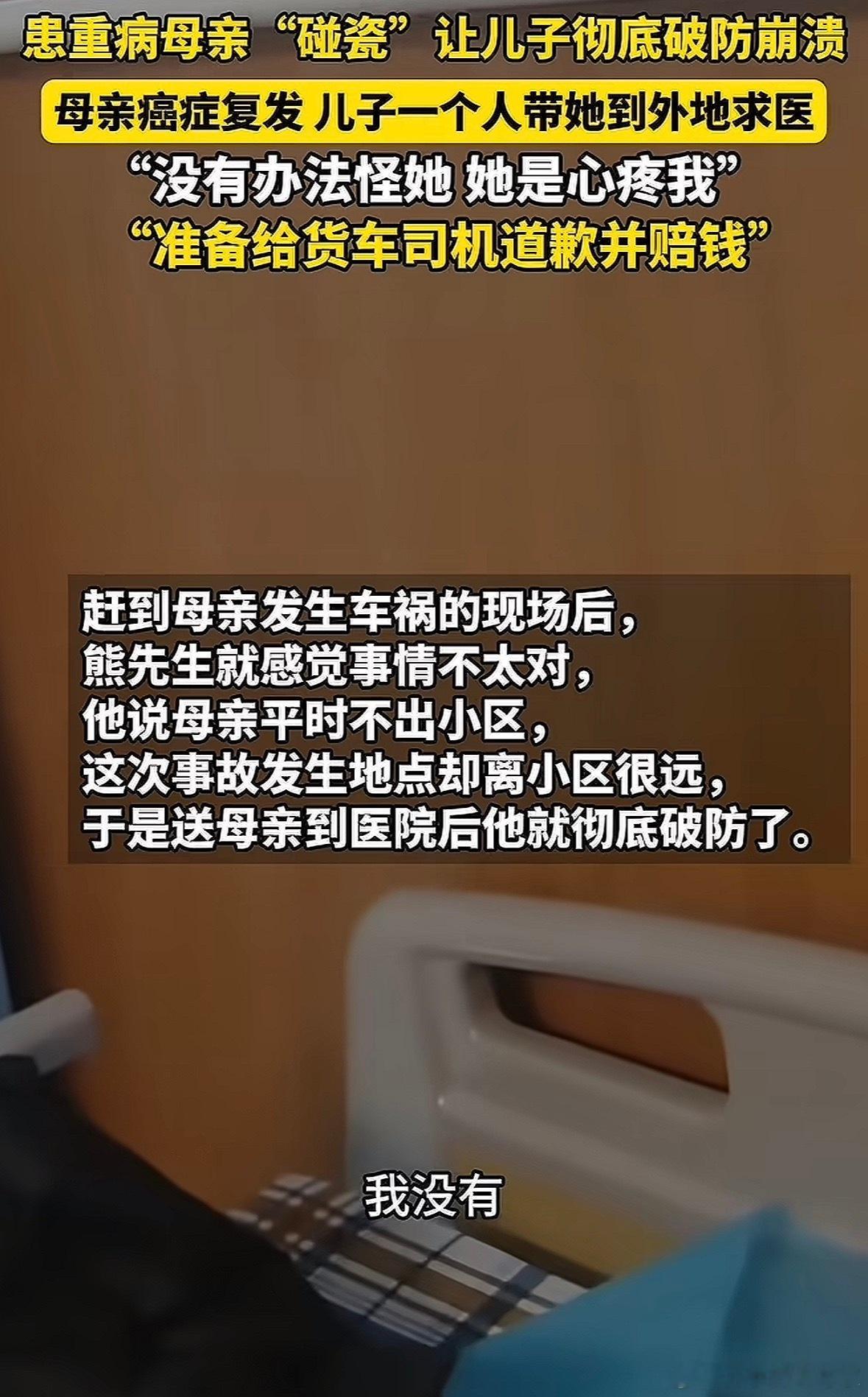 看到这个心里五味杂陈,有人说母亲的出发点是好的,想为家里减轻负担,我看这样不对,减少自己的负担不应该建立在加重别人的负担基础上,司机是无辜的,真要是没摄像头咋办?好在她儿子是正确的,现在有网友在捐款,希望能渡过难关儿子回应怒吼癌症妈妈碰瓷爆火