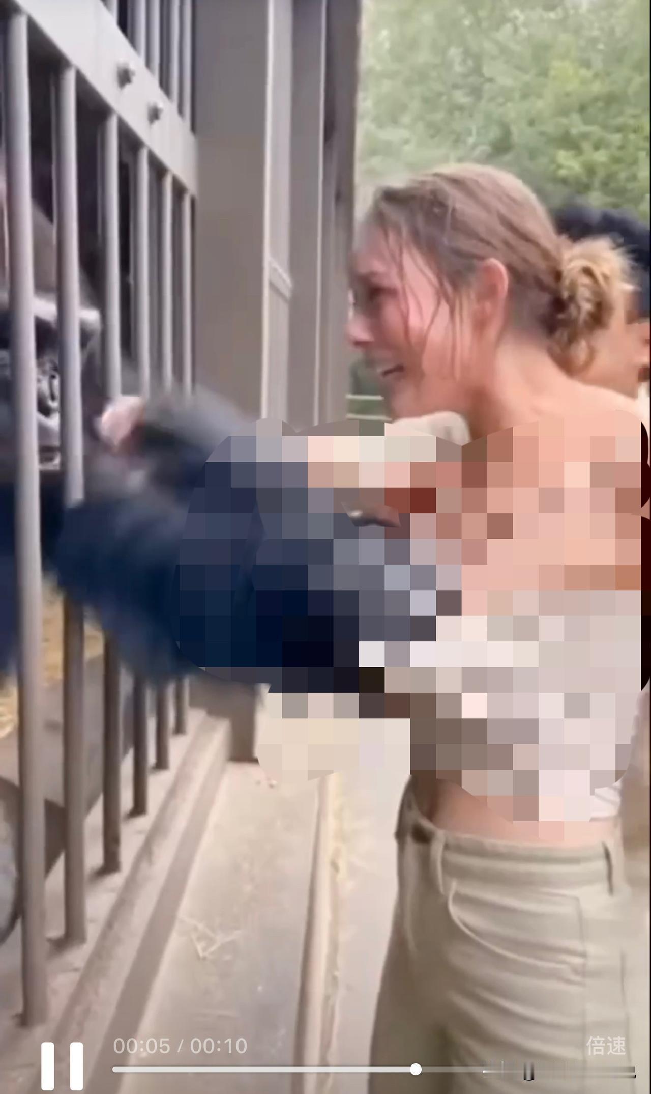 以后女孩子去动物园真的要离大猩猩远点了,真的看起来都能感受到痛入骨髓!今天看到一段视频,记录了一次动物园游览的意外瞬间,一对年轻男女正在游览动物园,估计是女性游客离大猩猩太近了,或者是女性游客招惹了它,亦或者是其它什么原因吧。大猩猩用右手伸出笼外抓住了女性游客的胸部,直接往笼子里面拽死不撒手。该女子被疼得撕心裂肺的惨叫却毫无办法,就连其男伴也是束手无策干着急。大概僵持了10来秒吧,大猩猩才松开了手,该女子也才得以摆脱痛苦!由此可见,在游览动物园时,真的要离大猩猩这类智力较高、又很灵活的动物远点,否则一旦他们起了坏心思后果恐怕是惨痛的。动物园惊险瞬间