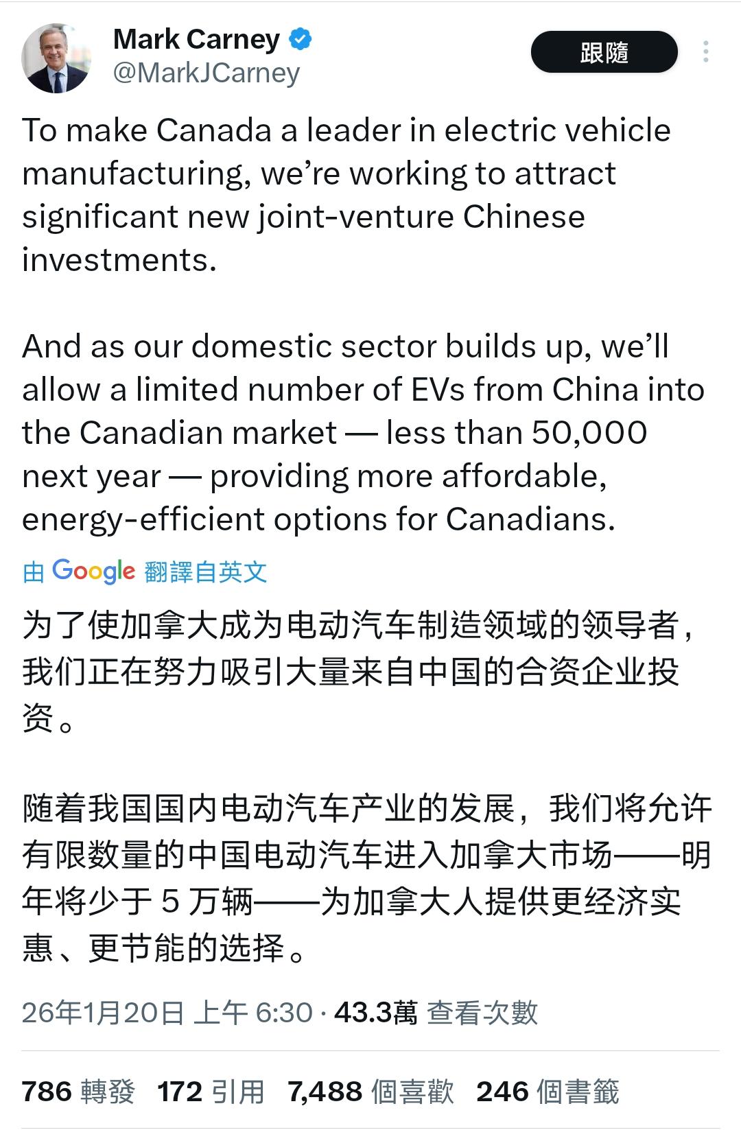 相比马克龙,卡尼的确不是来作秀的。 马克龙第1次是在回程的飞机上就开始说三道四,第二次甚至还没有回去,国内就开始玩平衡外交了。而卡尼很好的抓住了两个词:稳定和可预测——这会当今这个变乱交织的世界中,最动听的词。 从目前看,马克龙与卡尼,就是演员跟实业家的区别。 Source: X