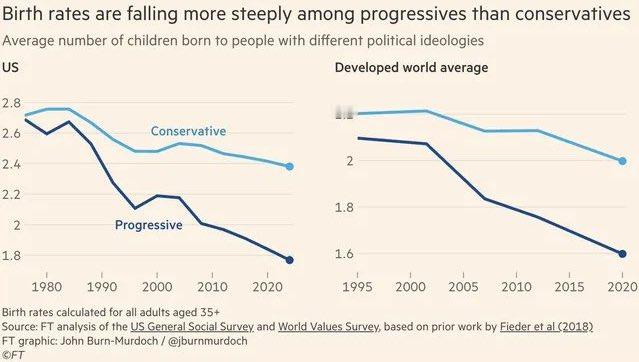 这张图,很可能就是真相。什么收入高低,女性地位之类的都不是有效的增加生育率的手段。这是教育和意识问题。美国保守派的生育率高于人口更替水平,进步派低于,并且一直在大幅度下降。而且所有发达国家的趋势都类似。无论是美国还是其他发达国家,把他们搞成黑绿鸠占鹊巢的根本原因是全球化的时代所谓个人解放为代表的“进步意识形态”。。。而有趣的是,绝大多数黑绿还有拉丁,对这个的确是免疫的。。。具体而言,就是推进 LGBTQIA+ 和 EDI 的那群人。川皇放弃欧洲,elon musk 天天支持欧洲极右翼的本质就在这里。美国有些人,比如川皇和 elon musk 已经意识到了:最危险的敌人在内部,而且最可怕的武器是思想。而这场斗争失败的结果,是西方文明终结。