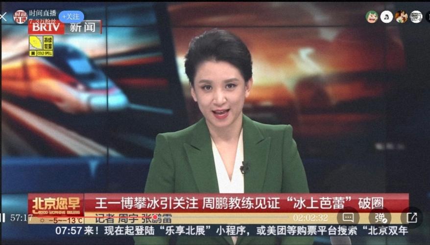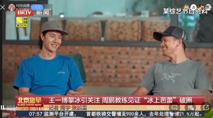 北京新闻《北京您早》栏目报道北京攀冰比赛,标题称“王一博攀冰引关注”,并特意配上王一博《探索新境2》中片段。 周鹏老师在攀冰比赛现场接受北京台采访时也直言:“是他(王一博)找到的我,这是一个互相选择的过程,他确实给我们注入了很多新鲜血液”。 王一博把攀冰这个小众项目带到大众视野并破圈,再次验证王一博热爱什么专注哪个领域,就会带火哪个领域。 王一博 王一博探索新境2