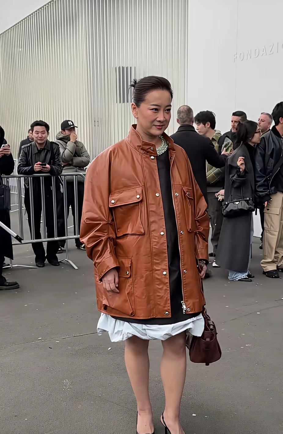 皮衣拉链卡在半截。 贾玲弯腰系鞋带的瞬间,肋骨轮廓从黑色皮革下凸出来——评论区炸
