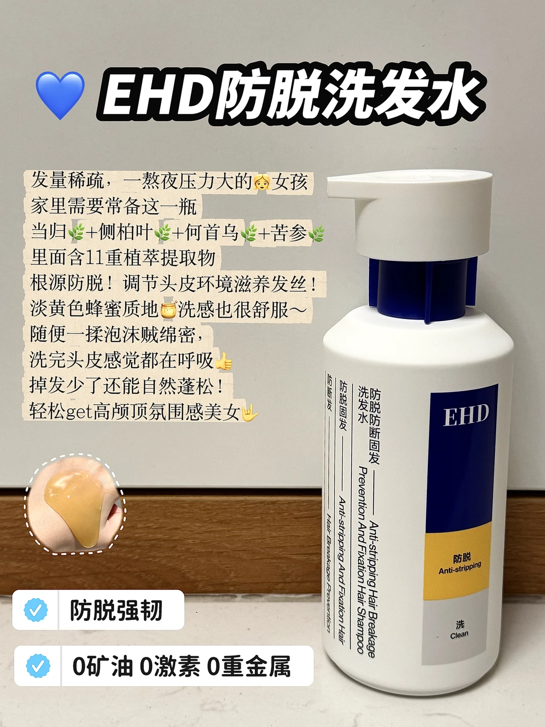 在试过不少产品后,我发现EHD 防脱洗发水特别适合运动人群——它既洗得干净,又不会过度清洁,成分温和,天天用也不担心伤头皮。