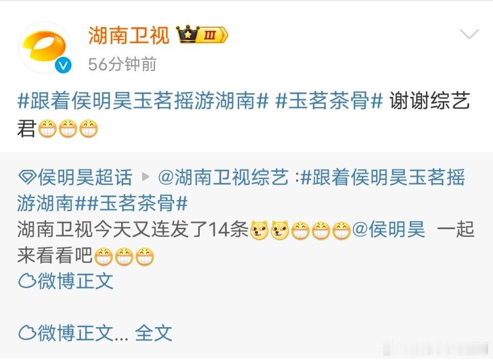 芒果🥭到底有多满意侯明昊的《玉茗茶骨》,一天连着发十几条原来是12个卫视第一👆🏻,强强强