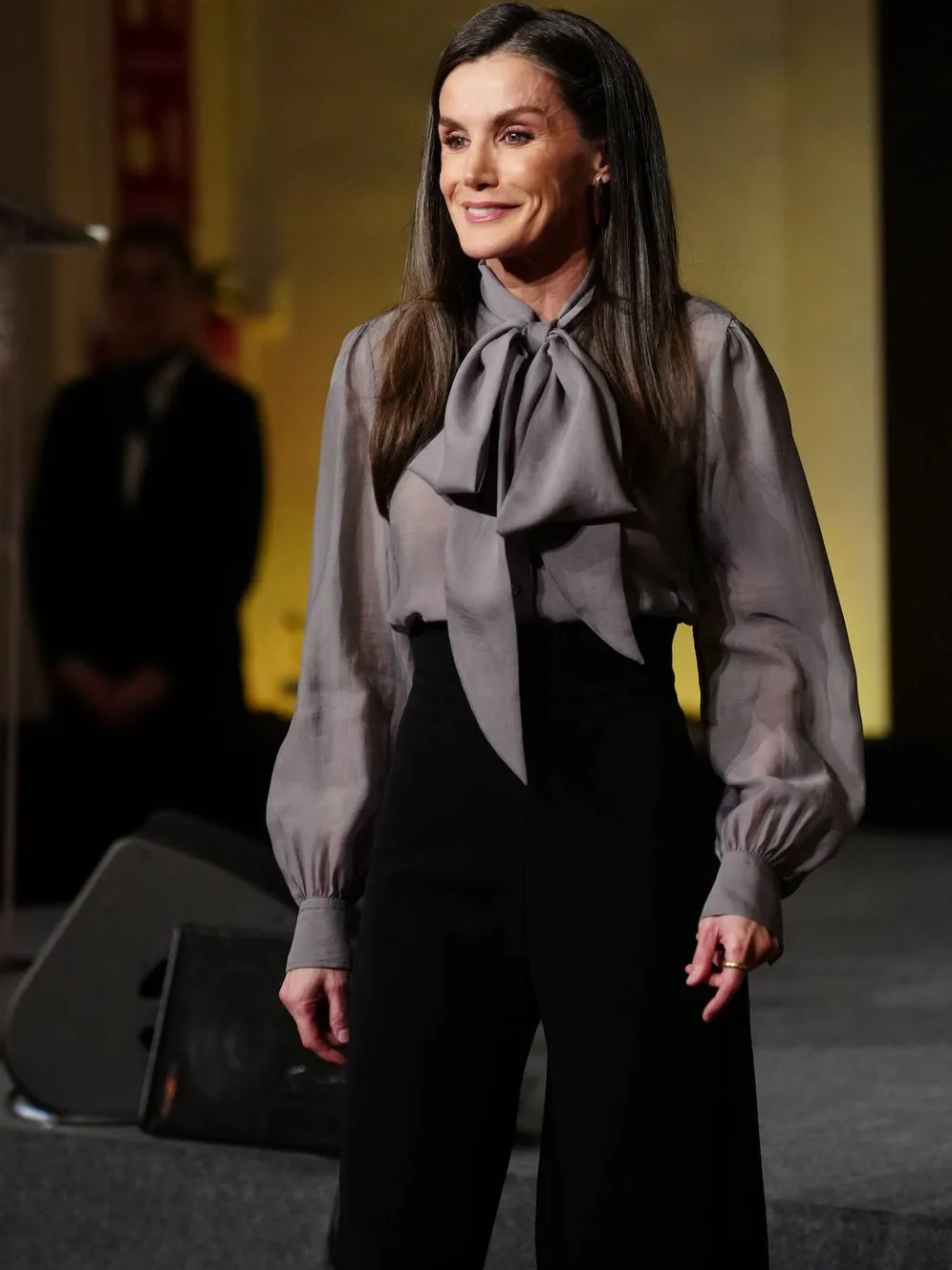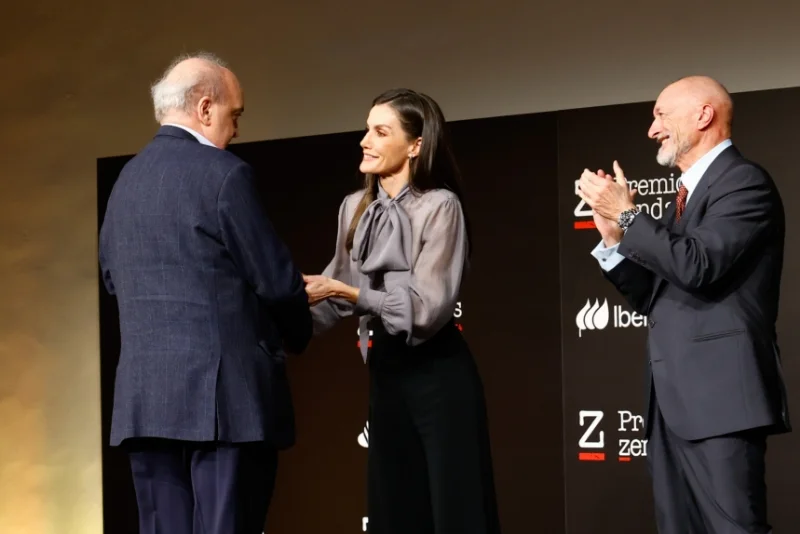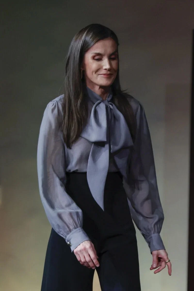 1月13日,莱后在马德里皇家挂毯厂出席24/25年度Zenda奖颁奖礼,表彰西班牙文学界各个领域的杰出人物。 重穿了去年下半年入手的Hugo Boss飘带衬衫,Sybilla高腰裤上大分,即便配的是低跟鞋,也能出脖子以下全是腿的效果~