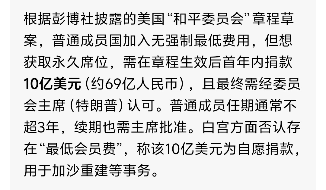 中方收到美方加入和平委员会邀请虚空弄个什么委员会,要永久席位就得捐10亿美元,