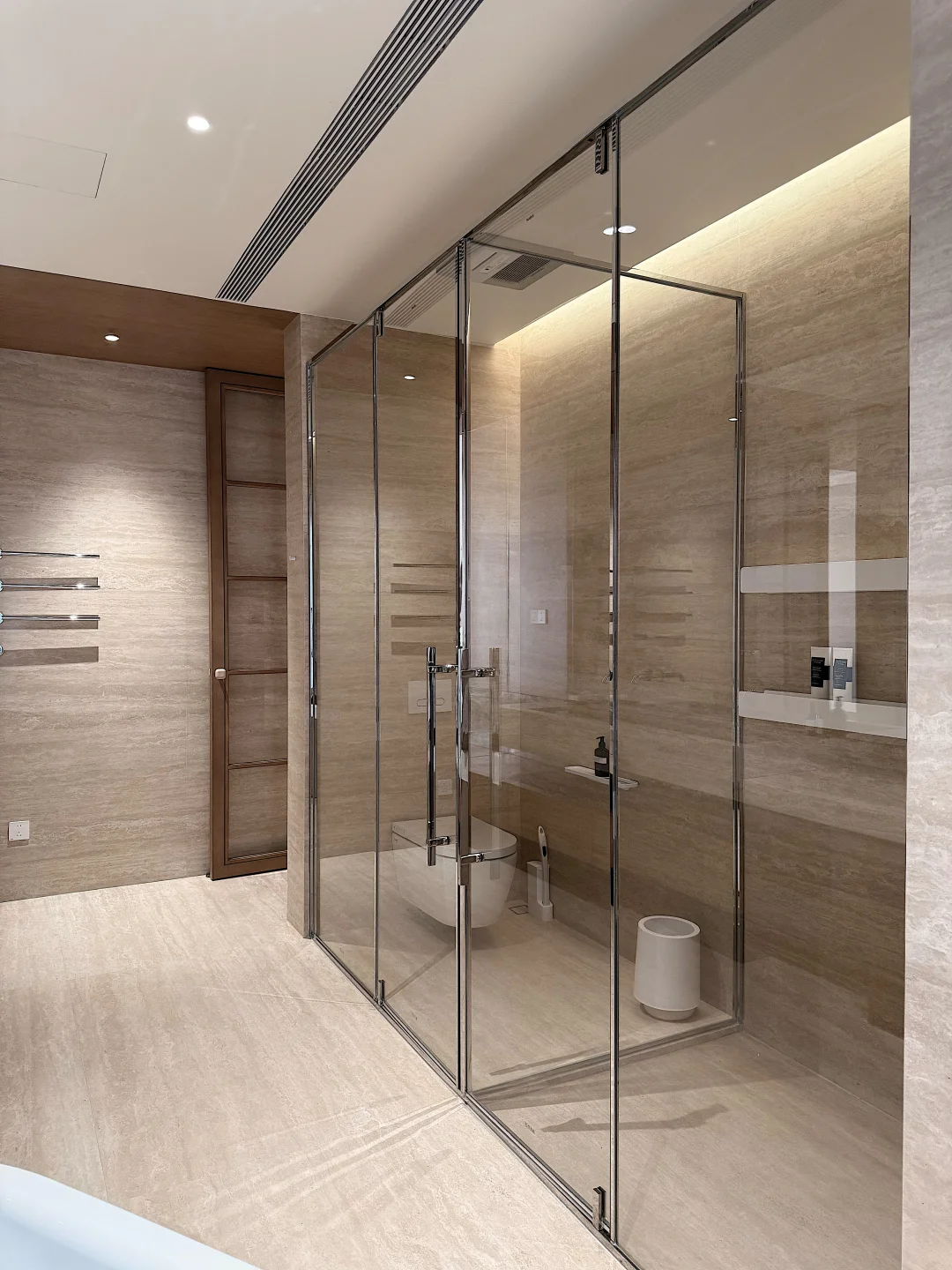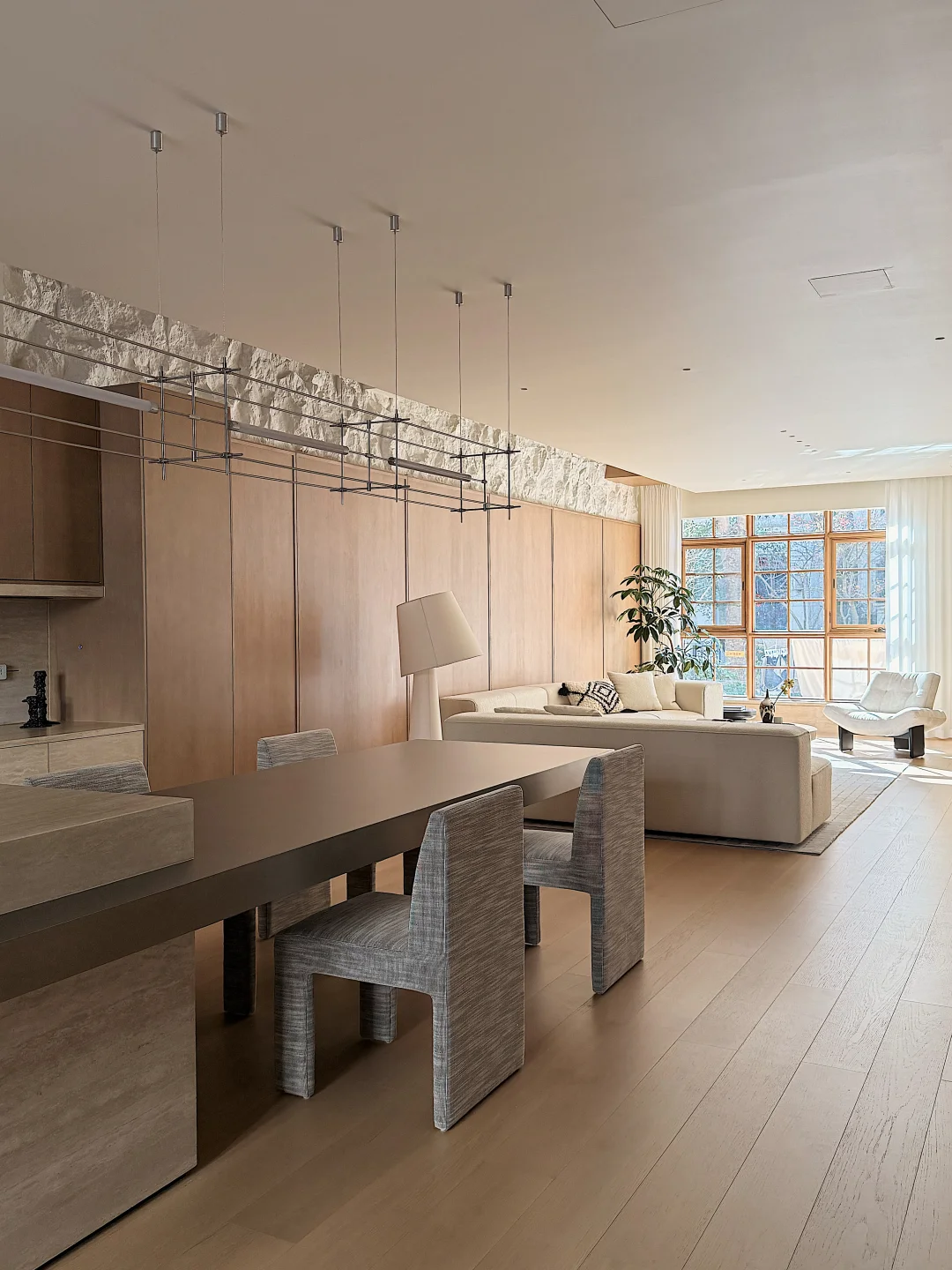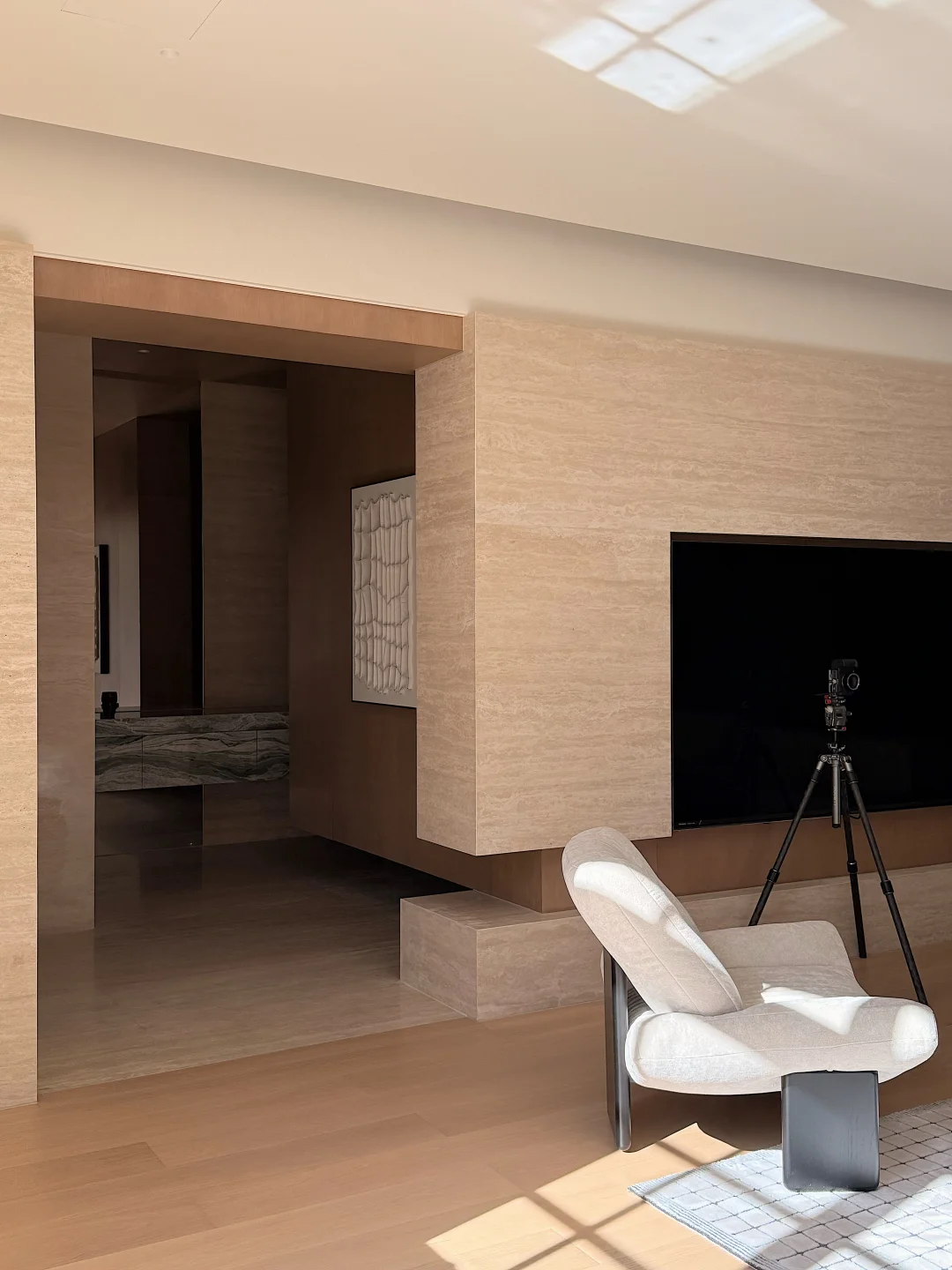 暖调木饰面裹满整个空间,搭配仿真 PU 石那自然的肌理感 灯光藏在石纹背后晕开柔光圈,踢脚线和风口都做了隐形处理 连水吧台的边角都磨得刚好柔和… 精致根本不是堆华丽,是这些藏在细节里的质感 把松弛感和高级感焊死在空间里了