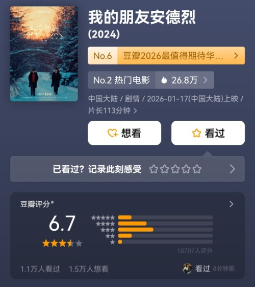 #比比舒淇董子健导演处女作#【评电影《我的朋友安德烈》:仅此而已】#你得承认董子健确实是资源咖# 记得我看过一遍,但是一点印象都没有了,我打开微信读书书架上双雪涛的《平原上的摩西》,直接跳到其中一篇《跛人》,上一篇是《我的朋友安德烈》。也就是说,我看过了,然后忘记了,就像李默碰到过安德烈,但是很长时间以来,他忘记了。我又读了一遍,我个人觉得写得很好,因为很冒犯。在我读过的东北文艺复兴三杰的作品里,是上乘佳作。但影视化这个短篇,我觉得大概率只能像小说的结尾四个字:仅此而已。所以进电影院的时候,确实有不好的预感,可能仅仅因为小说里“一切都未曾改变”的基调,和永远都没有真正完成的“好好告别”。当然,还有主创。果然,其实电影把李默和安德烈的关系调整之后,这电影和小说就已经没有什么关系了。作为资源咖的董子健想到了一个可能自认为高明的抓手:暗示安德烈成了自己脑中的幻象,一个看不见的自我对话者。除了一段静默的长镜头,你还能看到大量的让电影非常破碎的闪回镜头,一个新导演和一个“老”艺人对一部处女作的把握,想要展示一些手段和技能,但是“掌控”这个听着玄乎的词语,在电影叙事的过程中从反面展示了破碎。但是你得承认,董子健确实是资源咖,而且也得承认,“宝石老舅”最后现实主义的表演,完成了最后的温情收尾。但,仅此而已。所以我在想,如果我走进电影院的时候,没有重读一遍那个短篇,会不会有路人的陌生视角而获得崭新的认识,并且可能更加友好和客观。我重新捋了一遍电影,主观上觉得依然难有改观。因为哪怕主题围绕“告别”,你还是很难从人物关系的塑造里看到告别的核心——天呐,我不知道我今年用了多少次这个词:羁绊。羁绊到底发生过没有,羁绊到底够不够进行一场仪式,一场最后的告别,或者一场无法告别。往沉重了说,是无法真正完成的《海边的曼彻斯特》里的阿弗莱克的告别,往肤浅了说,是灶门炭治郎竟然使出了火之神神乐的瞬间。羁绊带来的绝对能量是没有的。仅此而已。也许可以这样比较一下。舒淇的导演处女作《女孩》,深得侯孝贤导演的真传,结尾长大的女孩回到母亲家里,一场吃面的戏,你以为会有的愤怒和愧疚,最后都哽咽成了一场莫可名状的羁绊,生涩是有,但是没有炫技,没有炫资源。舒淇讲了一个自己想讲的故事。董子健选了双雪涛,在《刺杀小说家2》折戟沉沙之后,其实算是一种误伤,其实这个文本的刺激性是很强的,你弱化这种文本的表达,往模糊真实和虚构的方向靠,就在示弱。怎么类比呢,童漠男的北下关小学的段子,如何上春晚?仅此而已。准确地说,这种做法本身,就是双雪涛的这个短篇小说所反对的。这未能化解的善良、勇敢、坚持甚至偏执,才是安德烈身上同时也覆盖着的忧伤,挥散不去的根本原因。我搜了搜采访,想听听董子健和刘昊然能聊点什么,看看是不是错过了什么,结果主要在:寒暄。(蒋楠楠)
