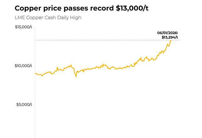 铜价暴涨22%突破13000美元/吨!华尔街彻底分裂:有人喊长期牛市起程,有人称