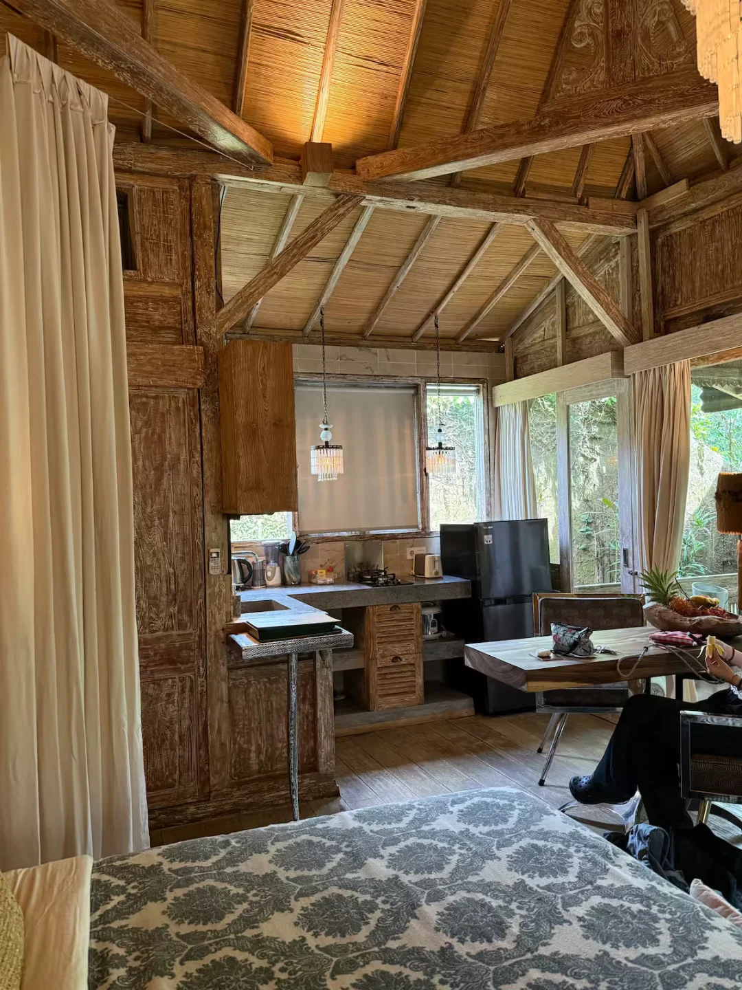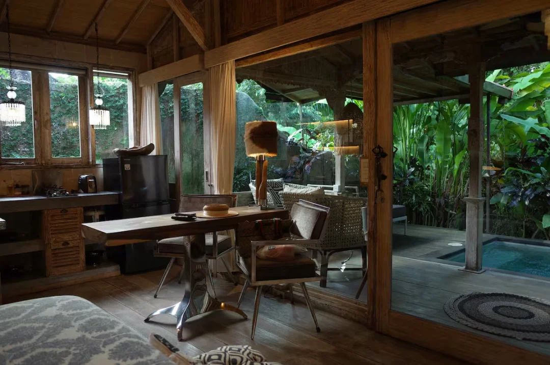 本篇笔记来自Airbnb爱彼迎房客的真实入住体验分享,希望也能点亮你的旅途灵感! 看到这家Airbnb就在乌布皇宫附近,位置很方便,就随手🆙了下来,结果到的当天就被美哭了😭完全就是远超预期的梦中情房。 整个民宿极具印尼特色,隐藏在茂密的热带雨林之中,带私人泳池的院子在阳光下像宝石💎一样闪闪发光,住在这里的几天,最喜欢做的事情就是坐在院子里吃东西,发呆了! 房间里面也装饰的特别漂亮,一居室的格局,有厨房可以做饭🍳,厨房虽然小小的但是窗外的风景特别好,还有小吧台,和朋友/恋人在这里一起做饭、吃东西都是享受 🍳房费包含早餐!都是现做的,很新鲜很丰富 💁check in的时候提供welcome foods,服务人员的态度非常热情 🏖️一间卧室,可以住2个人,大约1000rmb/晚上,参考平均价格 🛏️设施很齐全,浴缸、吹风机、洗漱用品、热水淋浴、电视、空调、网络,冰箱,该有的都有 🍃Tropical Oasis Awaits: Jumanji 📷本篇笔记所分享的部分内容来自Airbnb爱彼迎房客的真实入住体验,感谢与你一起分享美好旅行故事,也期待帮助更多小伙伴找到心仪住宿,收获一段特别的旅程。这些美图和故事旨在为大家提供旅行灵感,如果对笔记中的图片或内容有任何疑问,欢迎随时pm我们哦!你的经历点亮了大家的旅途,我们也很开心能见证你的精彩时刻❤