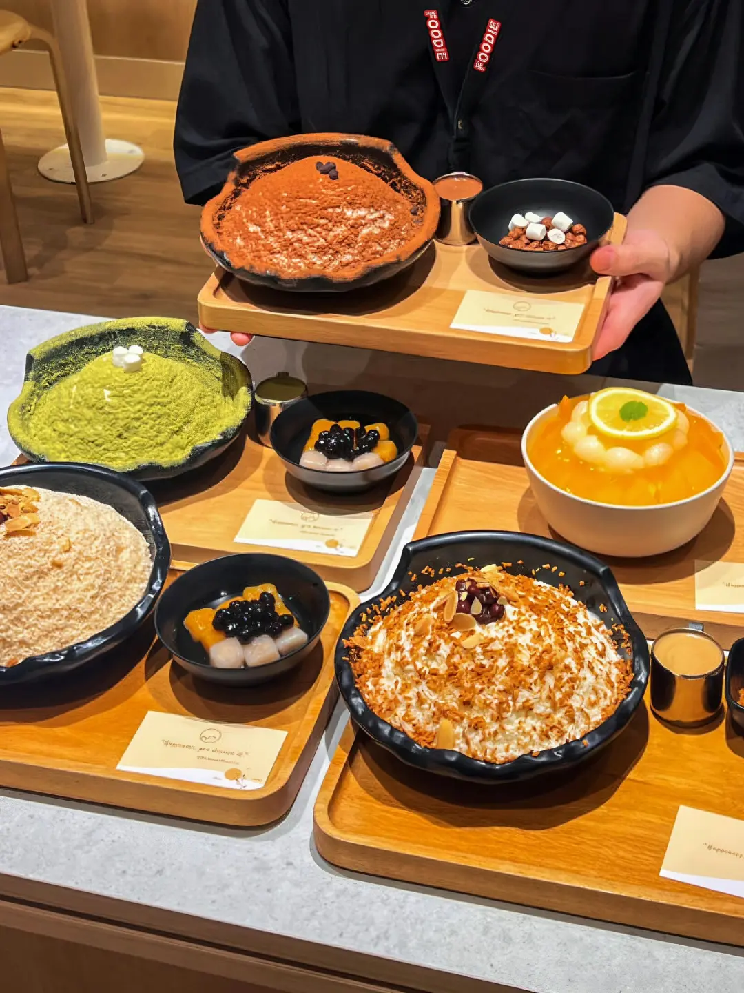店内提供6种不同口味的Bingsu,如烤黄豆乌龙、抹茶、芒果、红豆等,还有超多配料可以进行搭配,盲选豆粉、红豆、年糕,真的不会出错!天气热的时候来上一口很解渴!