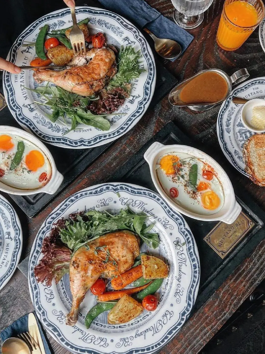 这是一家餐厅、咖啡、酒店综合体,位于曼谷唐人街,在Airbnb上的名字叫 :No.204, the Mustang Blu。在历史悠久的银行大楼上改建而成,现在走的是极繁复古风格,迈入店门的一瞬间能看到很多动植物标本,就像一个精致的博物馆。餐厅在一楼,不在这里住宿也可以吃饭