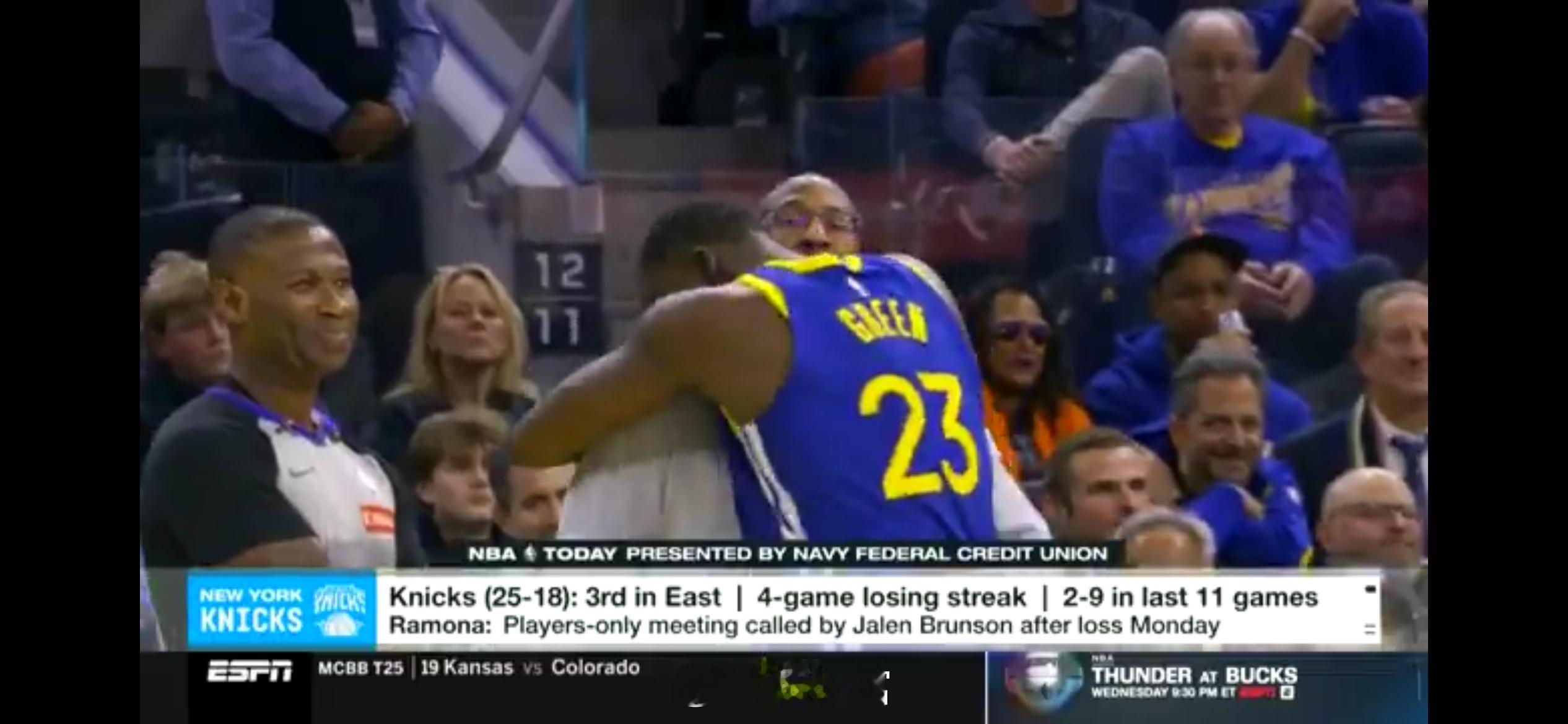 尼克斯过去11场输了9场,跟队记者伊恩·贝格利报道,尼克斯球员并没有完全接受主帅迈克·布朗给他们的角色定位。名记拉蒙纳·谢尔本说,对于布朗和格林拥抱这事,尼克斯队内也有意见,格林在那场比赛中有意绊倒了唐斯。 另一尼克斯记者斯蒂夫·波普尔则爆料,球队准备交易唐斯,已就此跟魔术、黄蜂和灰熊做过沟通。 谢尔本还爆料,布伦森组织了一个球员会议,信息很明确:别整天看着教练组,多照镜子反思自己。