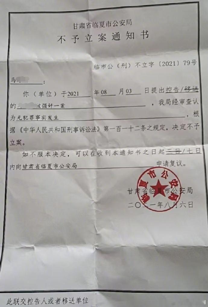 3人性侵12岁女孩警方不予立案女孩被3人性侵未立案12名公职人员被问责 2021 年甘肃临夏 12 岁女孩小燕见网友遭 3 名男子多次性侵,警方曾以“无犯罪事实”不予立案,媒体曝光后多名嫌犯被捕。2023 年 4 月 4 名男子被判强奸罪,12 名公职人员被问责但名单未公布。小燕叔叔马建强控告办案民警渎职,历经临夏州、甘肃省检察院审查,均认定不构成犯罪,维持不立案决定。