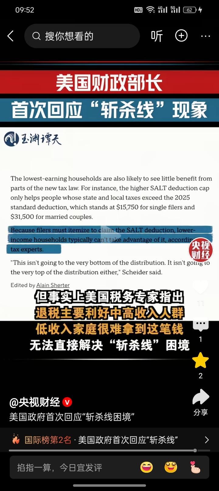 最近关于“斩杀线”的事情, 引发大家的讨论,大家都很想知道, 作为丑国的精英管理层是如何看待, 外界对于他们的斩杀线评价的呢? 我们的记者直接把这个问题,抛给了他们的财长贝森特,他是这样回应的,这个事情跟川普这一切没有关系。 造成这样的结果是上一届老登在的时候导致的。 怎么办呢?他说这些流浪在街头的人员,会得到一笔可观的退税。 那么问题来了,这次被斩杀线的群体,本身没有工作,又何来交税,重点是所谓的退税在丑国针对的是中高收入的群体!