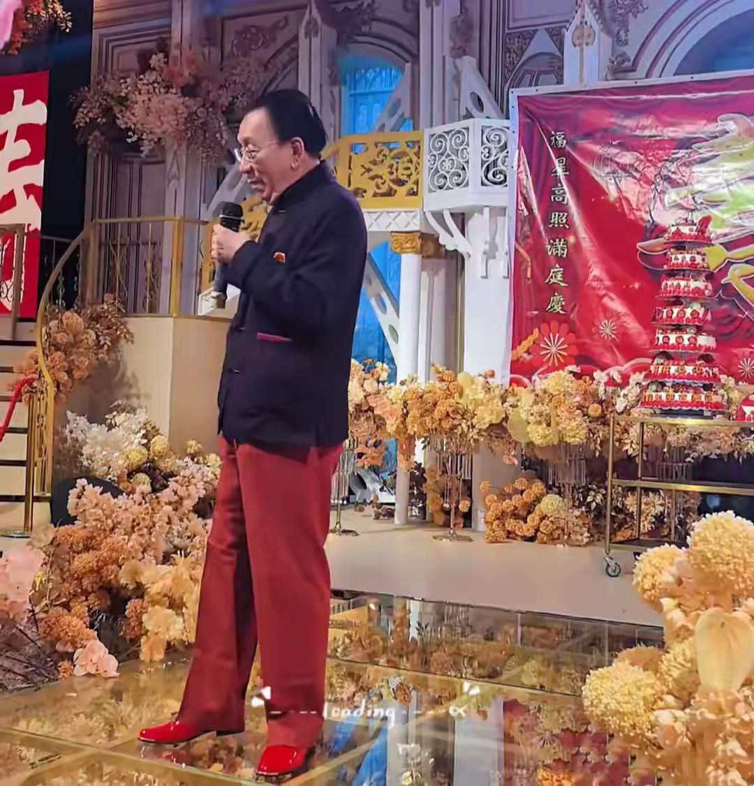侯耀华80大寿真敷衍,用大红篷布做背景写寿字,像临时搭的马戏团