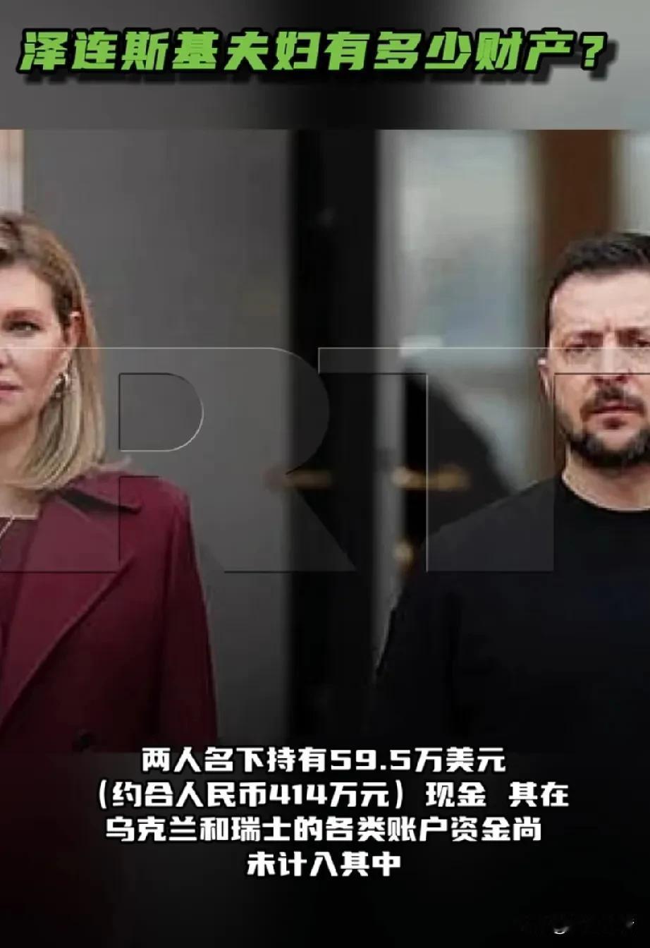 外媒披露泽连斯基夫妇2025年财产申报数据。 1月21日,据《今日俄罗斯》援引塔斯社援引相关文件报道称,乌克兰总统泽连斯基及其妻子叶莲娜的财产申报显示,两人名下持有59.5万美元(约合人民币414万元)现金,其在乌克兰和瑞士的各类账户资金尚未计入其中。 除超过50万美元现金外,泽连斯基夫妇在多家银行的账户中共持有305万格里夫纳(约合人民币7万元)、5.3万美元(约合人民币37万元)以及36万欧元(约合人民币296万元)。此外,他们还有10万格里夫纳现金(约合人民币1.6万元)和2000欧元现金(约合人民币1.6万元)。 据此计算,仅申报的资金总额已超过100万美元。此外,泽连斯基夫妇还拥有包括百达翡丽、泰格豪雅、劳力士、伯爵及宝玑在内的名牌手表与珠宝首饰,以及两辆汽车——路虎和奔驰。 消息称,泽连斯基夫妇实际拥有的资产可能远不止于此。根据叶莲娜的资产申报,她是多家欧洲注册公司的最终受益人。据乌克兰媒体报道,这些公司可能在乌克兰、意大利和格鲁吉亚等地拥有房产。 此外,泽连斯基夫妇2023年财产申报的家庭收入为1242万格里夫纳,约合人民币229.4万元,这笔收入来自租金征收情况改善和出售相关资产等。按照泽连斯基的说明,这笔收入主要来自工资、银行利息和房产租金。 2024年泽连斯基夫妇申报的家庭收入总计368,556美元,其中207,000美元来自出售政府债券的收入,剩余收入包括总统的工资、银行利息和出租私人房地产等。