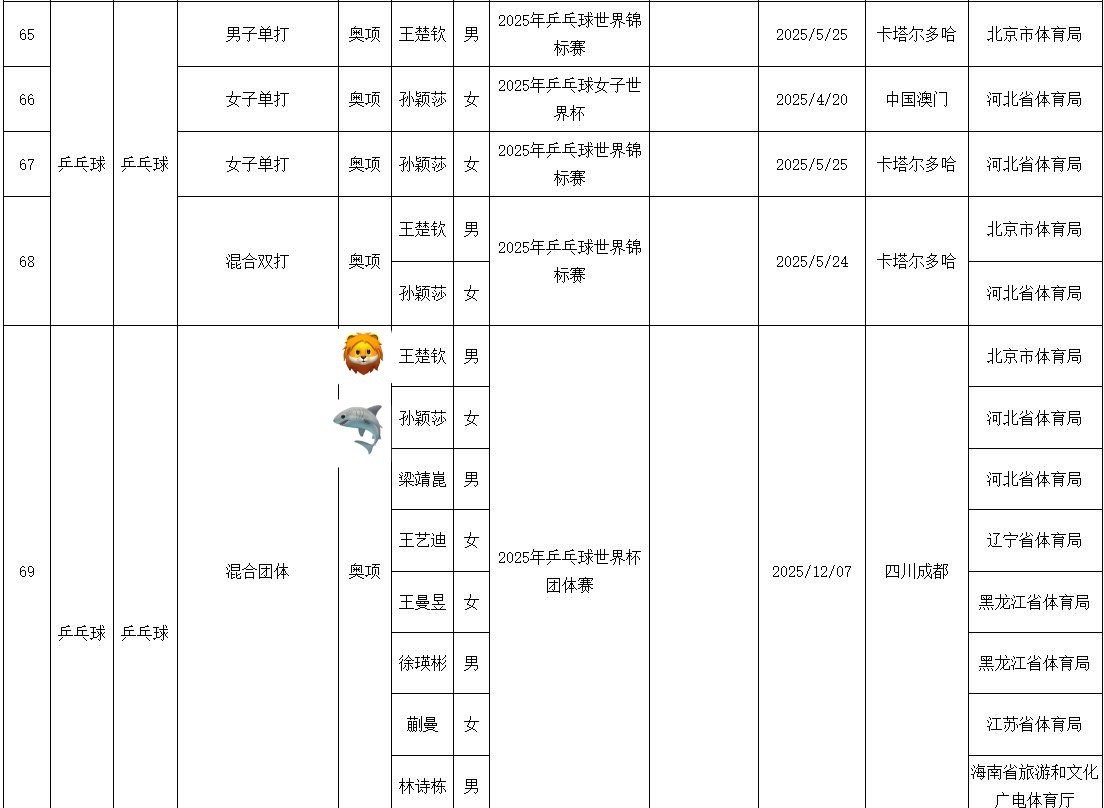 孙颖莎 王楚钦 20260121|2025运动员获世界冠军统计王楚钦孙颖莎超级棒