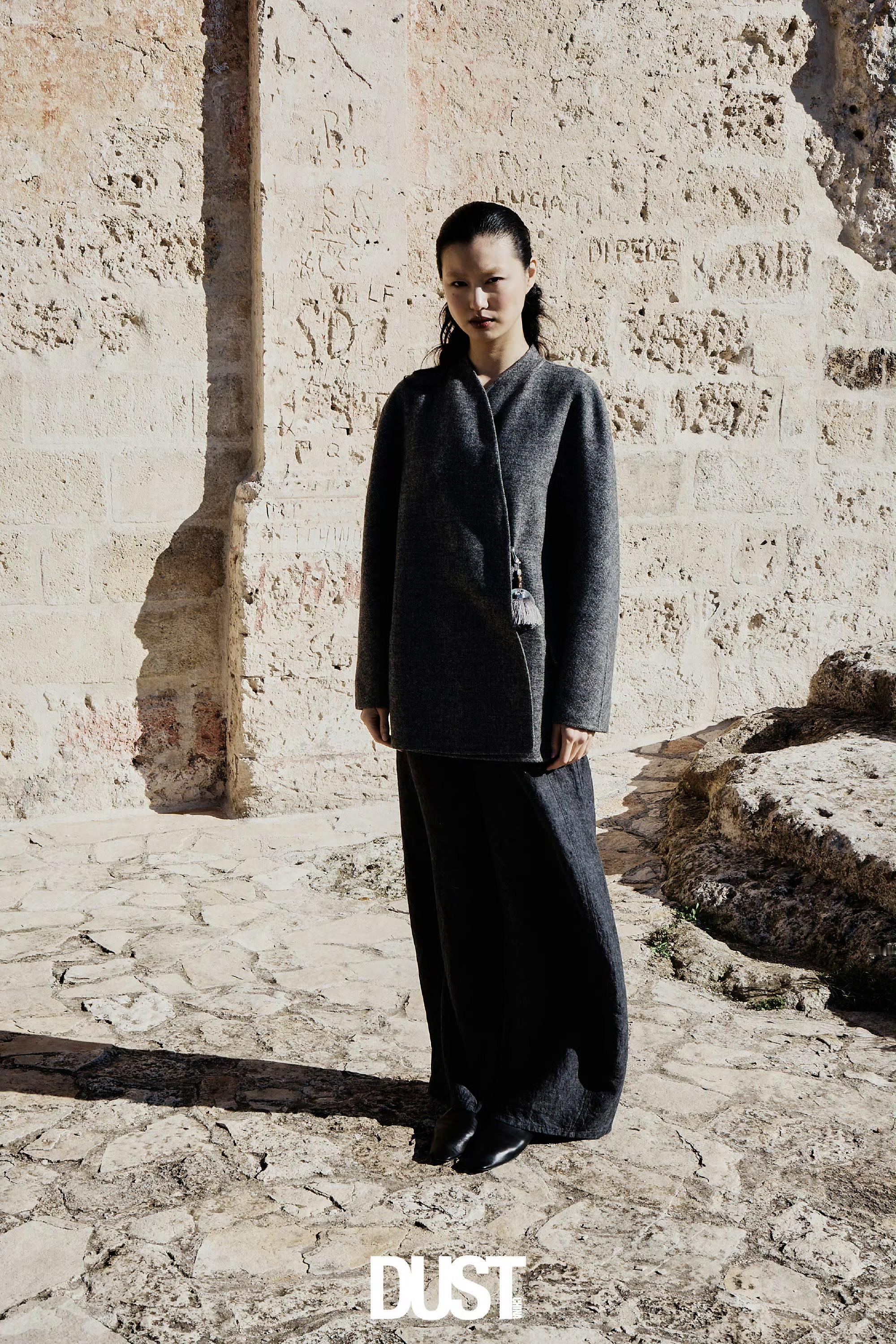 DUST中文版 第四期《THE WILD ISSUE》《生命艳贼》身体、石头与尘土在时间里缓慢流动,每一个姿态、每一次停顿,都是对存在本身的回应。 “艳贼”依旧存在——它不是人,而是时间无声夺走一切的方式,而生命仍在场,仍可见。摄影:Gorka Postigo Breedveld 造型:Adrian Bernal出镜:陈瑜Estelle 、毛小星MAO 化妆:Simone Gammino