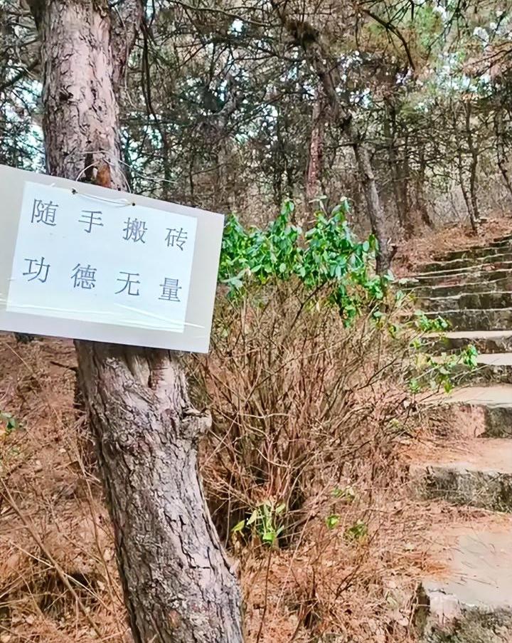 想到这个办法的人,绝对是人才。 唐山某地有山顶有座观音亭,山高路陡,共1200个台阶,近期要修缮观音亭,所以山脚下运来了好几车砖头。 雇人搬砖到山顶,需要一笔不小的费用,于是有人想到了一个办法,在山脚下贴上了“随手搬砖,功德无量”的标语,鼓励前来锻炼身体的游客帮忙搬砖。 反正都是锻炼,还真有不少人帮忙搬砖,随手拿两块爬到山顶,放在观音亭周围。 这样既省下了人工费,又满足了一些游客想做善事的想法,两全其美。