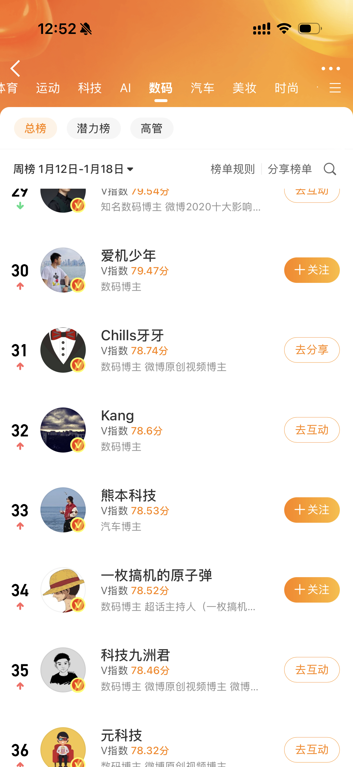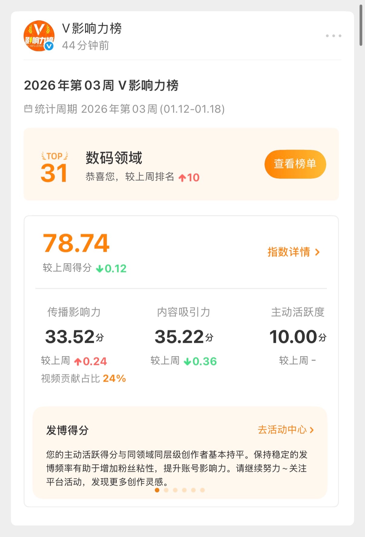 上周V影响力榜排名31。没给大家丢脸吧?