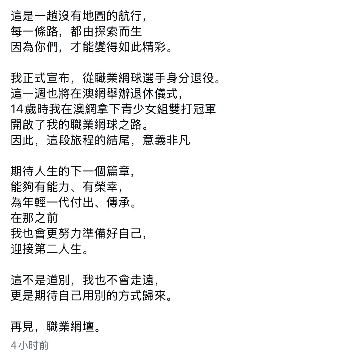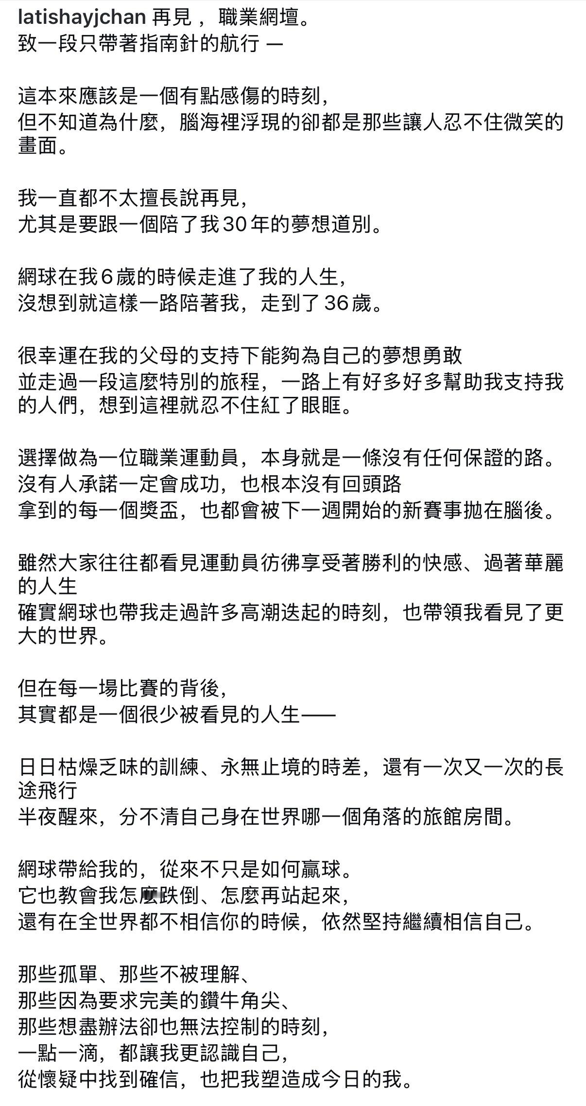 前世界第一、前美网女双冠军詹咏然写了三大段作文正式宣布退役提到拉缇莎小姐,大家首先想到的是?澳网2026
