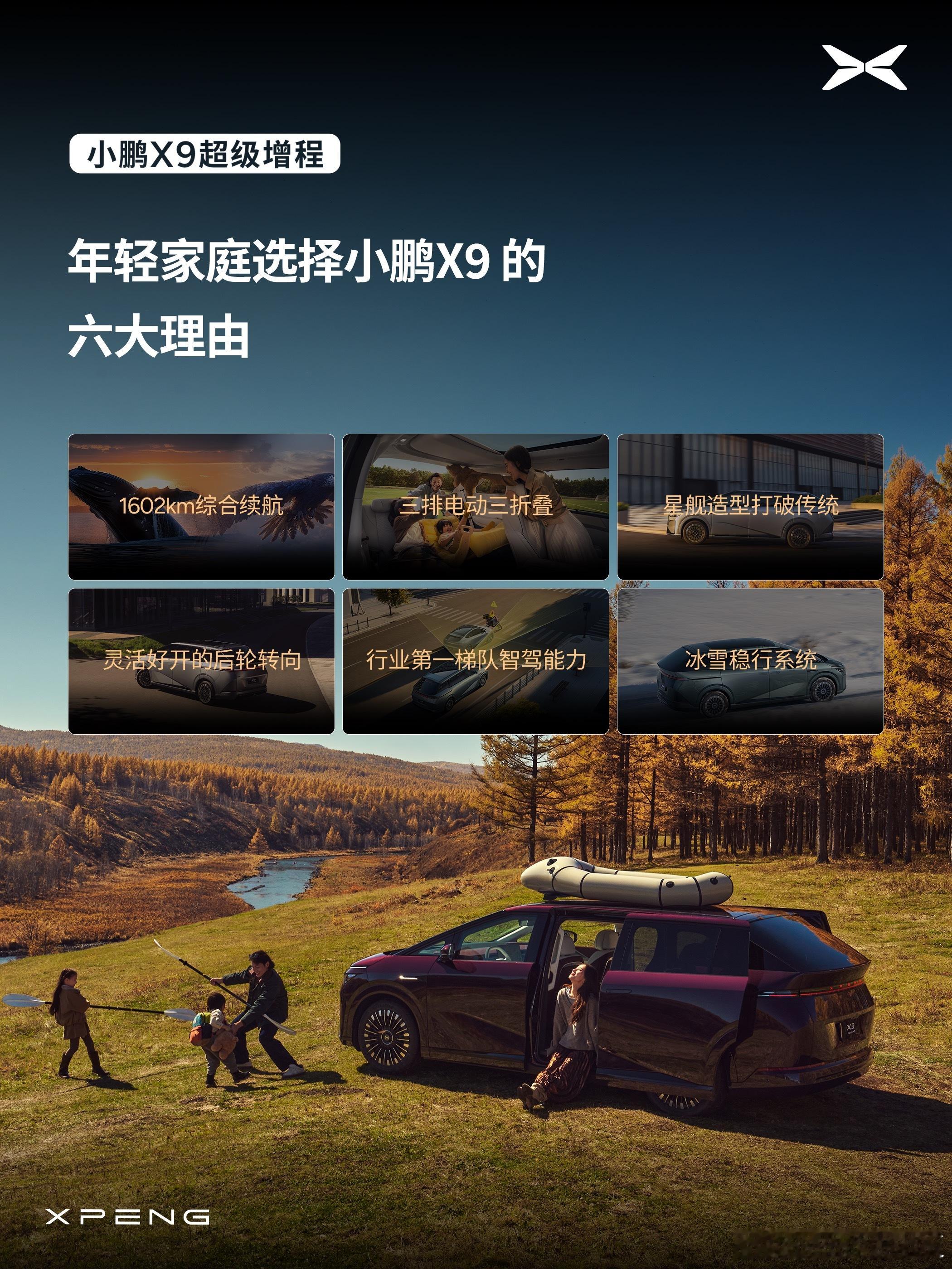 小鹏X9超级增程用户画像出炉——57.2% 都是 90 后车主,8 成增换购来自豪华品牌,每 2 次试驾就有 1 个家庭提车!北方核心城市销量增幅超300%,直接打破电动汽车 “北方禁区” 魔咒~续航、智驾、造型、空间全在线,实力圈粉无数!解锁年轻家庭的MPV首选密码!小鹏X9年轻家庭的第一台MPV小鹏X9超级增程首个用户画像报告发布