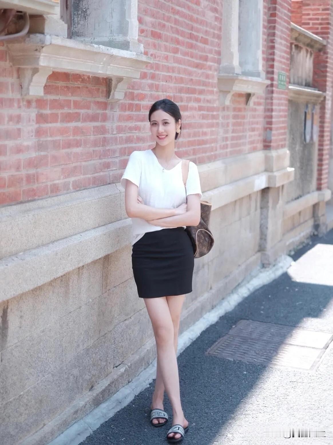 一位气质温柔的长发美女。身穿白色衬衣,黑色职业西装套装,她身姿婀娜,肌肤似雪般莹