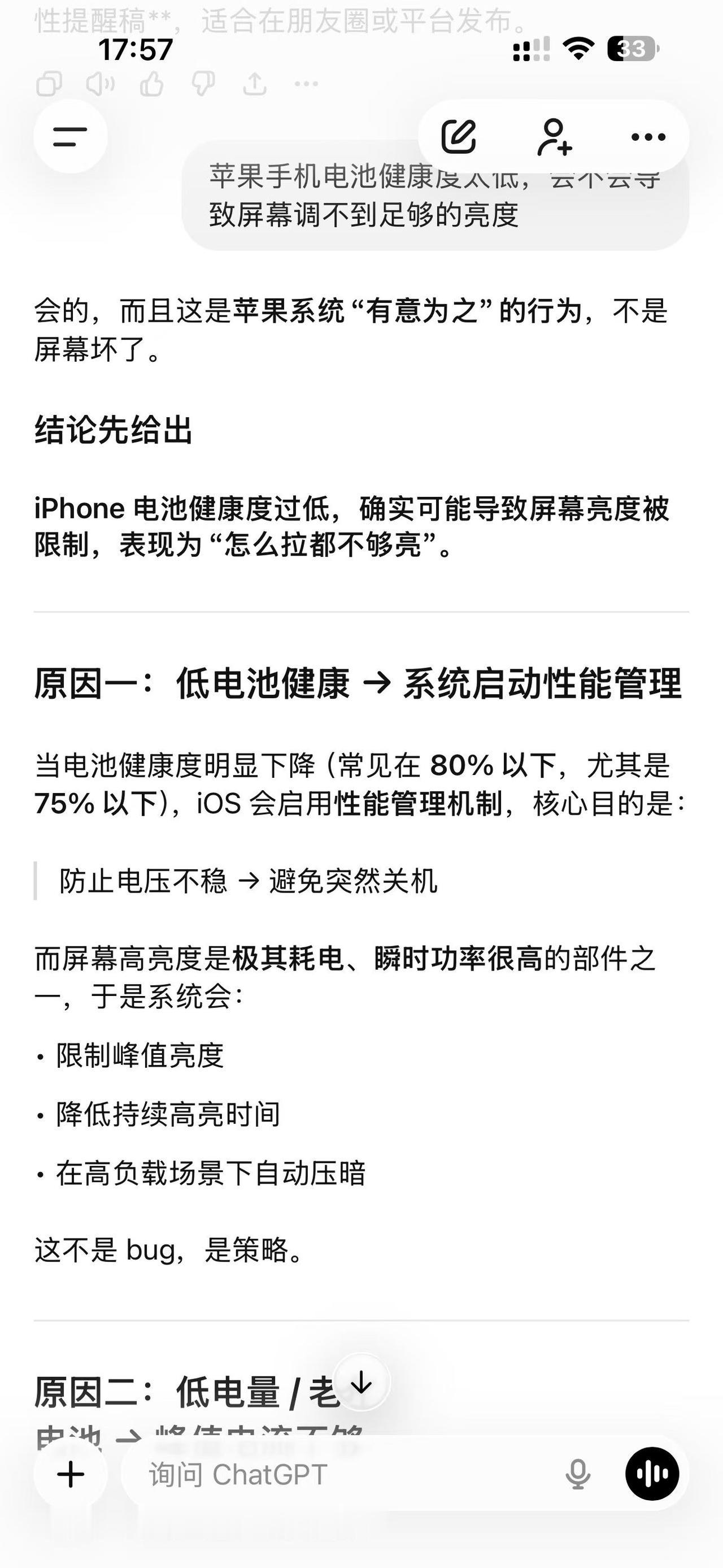 一年多来,手机屏幕一直无法点到最亮,阳光下更是愁瞎老眼,我本以为是摔坏后换屏导致了这一切。直到今天,我换了新电池,发现屏幕就像这几天的李亚鹏一样,突然又亮堂起来。 问了问 chat, 才知道电池健康度低的话,屏幕也会被残障。 喜欢做阅读理解题的我感慨:人如手机,老登更像老手机。很多人这几年一直掉链子,面目越来越模糊。人们会评判他嘲讽他,很少能有理解之同情,也更少懂得后的慈悲——当事人的身体和大脑早就残血,已无法点亮绩效和善意。 结论:暂时换不了电池,那就低亮度低期待低欲望地活着吧。