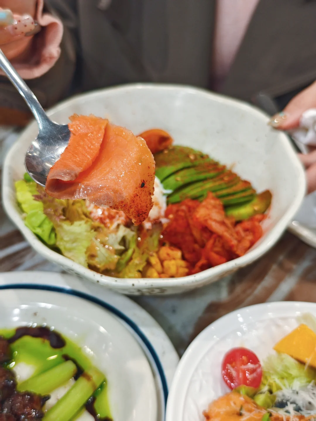 幸福感就来源于每天到逛吃! 坐落在通济桥附近,不是很起眼的一间简餐店 带点美式复古的感觉,里面的圣诞节装饰还在 紧靠着的座位,散发出一种慵懒而温暖的氛围 夏威夷烟熏三文鱼波奇饭,色彩鲜艳得像一幅画! 三文鱼烟熏红+牛油果清新绿+温泉蛋微黄 南加州水果大虾沙律,清爽开胃 大虾鲜嫩弹牙,配各种新鲜水果和爽脆蔬菜 意大利黑醋金蒜牛肋条是意外的惊喜 很中意这款黑绿搭配,黑醋带点微酸,一口一粒牛肋条 最后还有小惊喜,很好看的冰箱贴,成功收集! 店面可能位置不多,要提早出发哦。