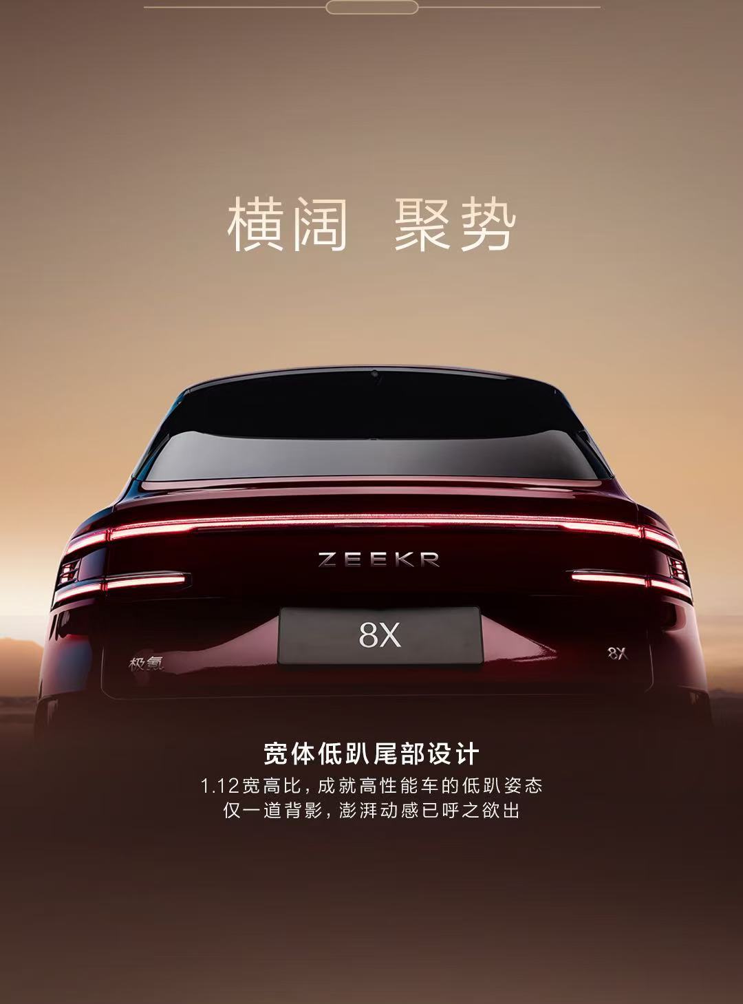 极氪8X这台车,第一眼真的挺抓人。车身比例做得特别舒服,低趴又不夸张,宽体线条一出来就很有旗舰SUV的气场。车头的直瀑格栅和星钻大灯挺有辨识度,晚上亮起来应该会更帅。侧面的线条从车头一直延伸到尾灯,看起来很流畅,也很有力量感。整体感觉就是那种既适合日常通勤,又能在周末跑个长途的车。内饰虽然没看到太多细节,但从外观的质感来看,应该不会让人失望。极氪8x