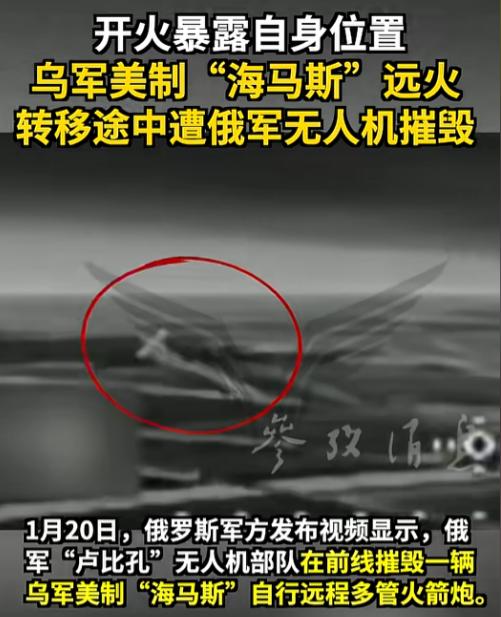 俄军上演精准“斩首”,就在1月20号乌军最倚仗的美制“海马斯”火箭炮,刚打完一轮炮弹想脚底抹油溜之大吉,结果被俄军无人机死死咬住,直接在转移途中炸成了一堆废铁。   这剧情简直比谍战片还刺激,当时乌军刚打完炮,还沉浸在“打了就跑”的老黄梦里,油门一踩就想撤。   可他们万万没想到,俄军“卢比孔”无人机部队早就在天上等着了,火箭炮开火时的火光和信号,就像在黑夜里点了个大灯泡,瞬间把自己的位置给卖了。   而无人机就像盯猎物的鹰,一路跟到克拉马托尔斯克的新巴赫梅捷沃村附近,瞅准机会直接发起自杀式袭击,“海马斯”连反应的机会都没有,当场就报废了。   要知道,“海马斯”可是美军援助的压箱底宝贝,射程远、跑得还快,乌军靠着它没少搞偷袭。   但这次俄军的无人机部队,直接把它的“游击套路”给破了,这就好比小偷刚得手想跑,结果发现警察的无人机已经在天上跟了半条街,根本没地方藏。   这事说白了就是现代战场的真实缩影,以前靠机动性能躲猫猫,现在天上全是24小时不眨眼的“眼睛”,你刚冒头就被锁定,再快也逃不过。   对乌军来说,少了一门“海马斯”等于少了一张王牌,对俄军来说,这不仅是拔掉了一颗钉子,更是秀了一把无人机部队的硬实力。   其实这事儿也给所有人提了个醒,没有永远的“明星武器”,只有不断进化的作战方式。   在无人机时代,再厉害的装备也可能变成活靶子,你有你的撒手锏,我就有我的反制招,战场上的猫鼠游戏,永远都是道高一尺魔高一丈。