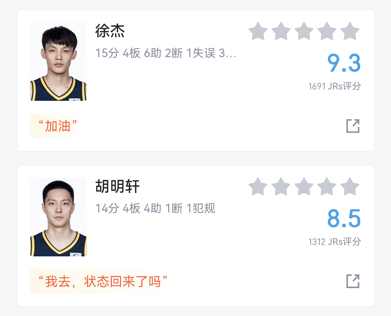 对宏远来说比较好的一条消息就是,胡明轩和徐杰的状态都有所回暖。胡明轩是连续回暖,徐杰是这场球发挥有所回暖。两人分别拿下14分4板4助攻和15分4板6助攻。接下来再看他们能不能延续这个态势,肯定会有起伏,但是只要整体向好就行了。吉林男篮vs广东男篮