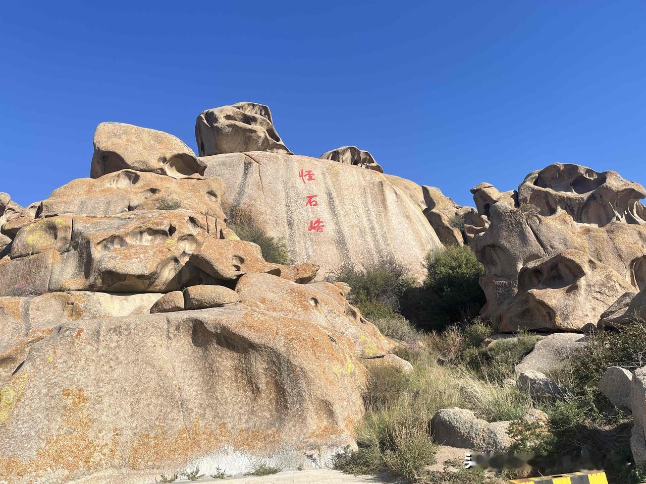 站在怪石峪的山脚下,抬头是晃得人睁不开眼的蓝天,干净得像被水洗过。眼前的花岗斑岩群是大自然最随性的雕塑,巨石堆叠出各种模样,有的像昂首的巨兽,有的像静坐的老者,橙褐纹理在阳光下泛着暖光。 山风掠过带着干草的气息,几株倔强的灌木从石缝里钻出来,给硬朗的石头添了点温柔。摸上去粗糙的石面,藏着千万年风化的痕迹,让人忍不住想象它曾见过的风雨与星辰。