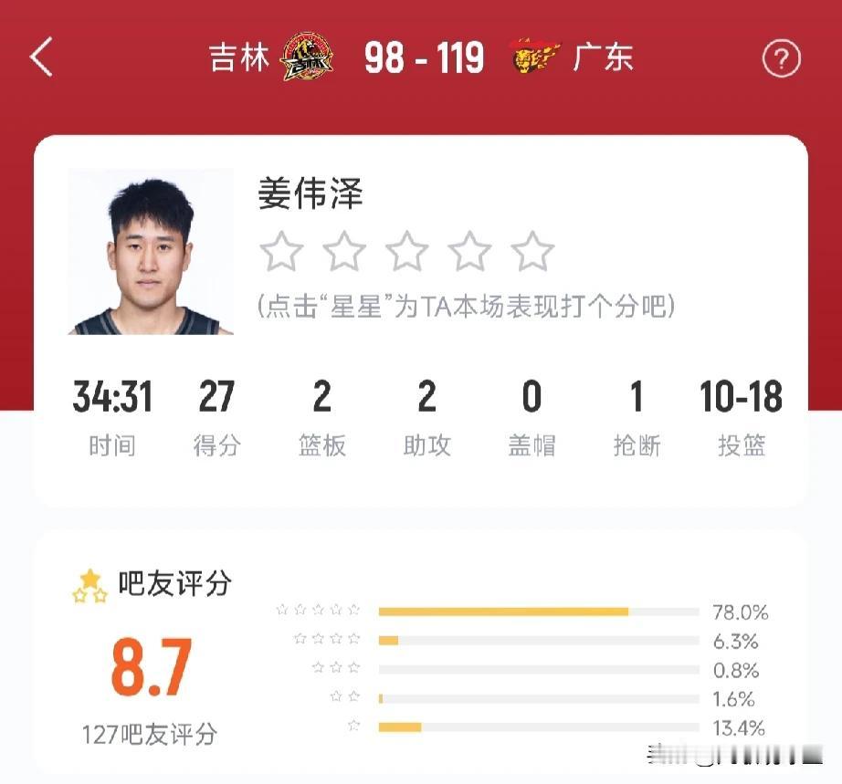 看了吉林与广东一战有感!如果不是放水,辽宁打不过吉林,真的!首回合交手,辽宁能赢吉林就是因为钟诚轮休了姜伟泽和曾繁日,主动让了一场,这场对广东,小姜直接暴走,全场18投10中,砍下27分,看昨晚两队的三分对攻大战,辽宁可能半场就要投降了,想一下,广东打辽宁,单节就打花了,反观广东打吉林整个上半场都打得很焦灼,广东丝毫不占优势,说实话,如果不是奎因的大爆发,砍下全场最高的42分,广东也不可能赢下吉林!