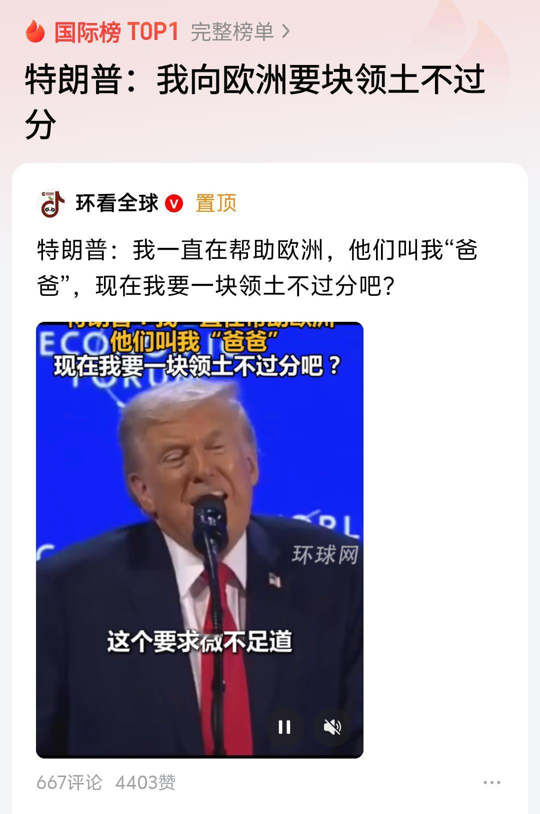 特朗普在瑞士达沃斯论坛上讲的一番话,让人目瞪口呆! 他的意思是,他一直在帮助欧洲,他们还叫他“爸爸”,现在要一块领土不过分吧? 愣了半天,认为他说的在理,虽然总觉得哪里不对劲。 估计欧洲人要跳脚了吧?毕竟喊“爸爸”的,只是吕特一人,而不是他们!