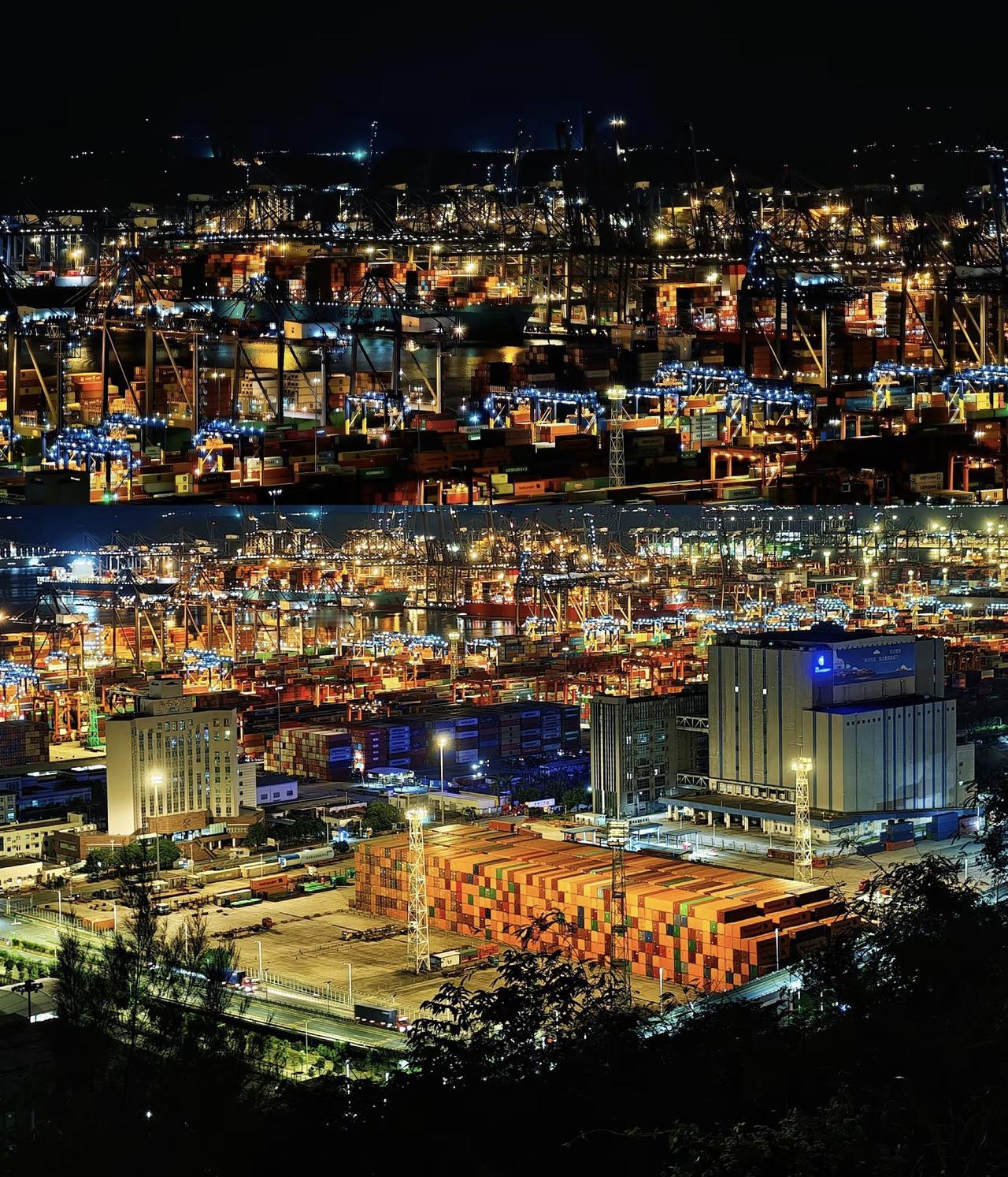 今晚来到盐田港,被眼前的景象彻底震撼了。 密密麻麻的集装箱在夜色里像被打翻的调色盘,龙门吊的灯光与海面的波光交织成一片流动的星河。远处的岸桥像钢铁巨人,在光影里有序忙碌着。 这哪是港口,分明是深圳不眠的心跳,是无数个平凡日子里,中国外贸奔涌向前的脉搏。置身其中,才懂什么叫“大国重器”的浪漫,也懂了深圳速度背后,是无数个这样灯火通明的夜晚。