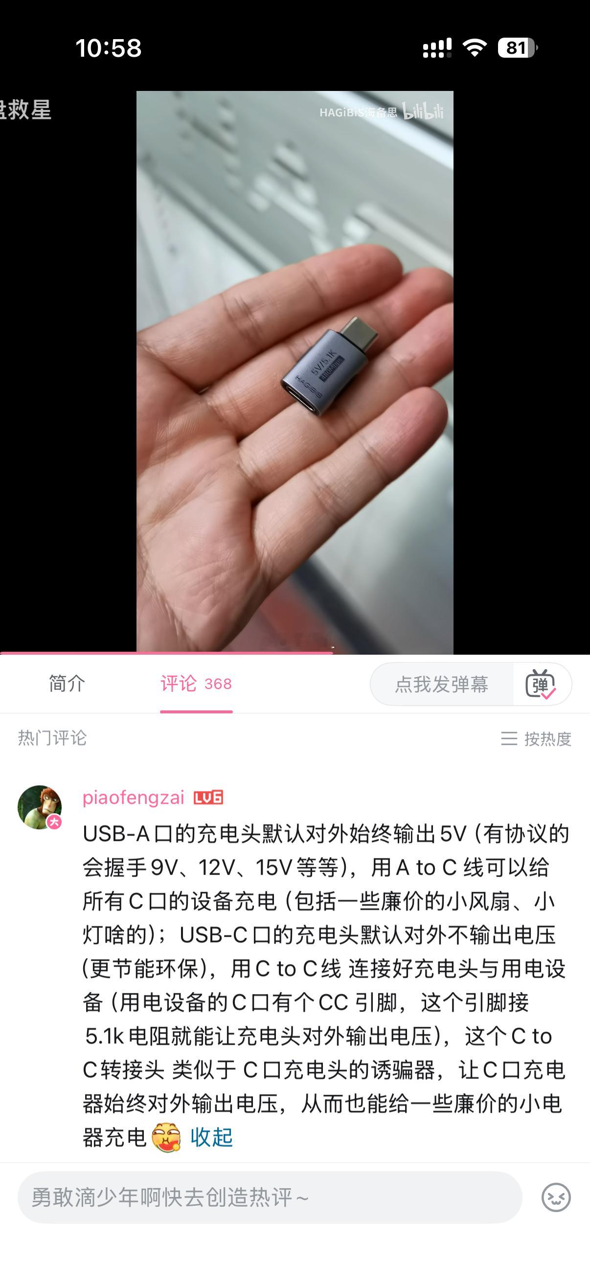 我在视频网站上刷到了这么个品牌,海备斯,专注于电子产品的各种整活。无广啊,介绍一下比如说能把两根 Type C 的数据线接在一起的这么一个小转接头或者是一个里边有电阻的转接器。这样的话就能用 Type C 的充电器来充一些比较老旧的用电器,比如说小电扇什么的。这家公司真的是太癫了。