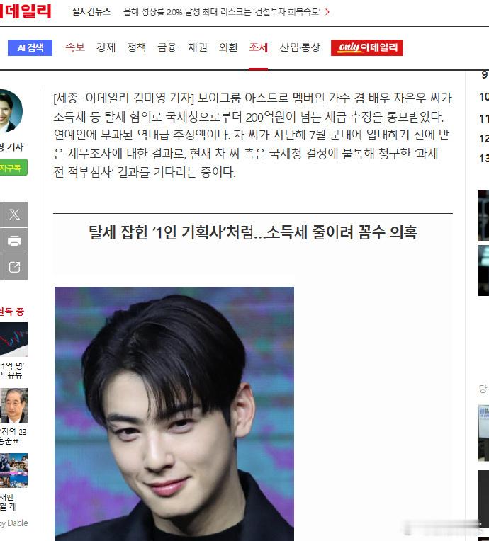 车银优回应涉嫌逃税 据韩媒,车银优去年春天因涉嫌逃税,接受了国税厅的高强度调查。据悉,车银优涉嫌逃漏超过200亿韩元(约人民币9480万)的个人所得税,其本身已有所属经纪公司Fantagio,车银优母亲崔某又设立了A法人,与所属社签订服务合约,国税厅判定A法人是一家并未实际提供服务的“纸上公司”,以此不当方式降低税负。对此,车银优方面表示冤枉,已提出课税不当审查请求,并称由于Fantagio的代表多次更换,“车银优的母亲出于对儿子演艺活动的不安和保护意愿,才设立公司直接经营经纪业务”,并强调“(A法人)并非无实质的纸上公司。” 车银优涉嫌逃税