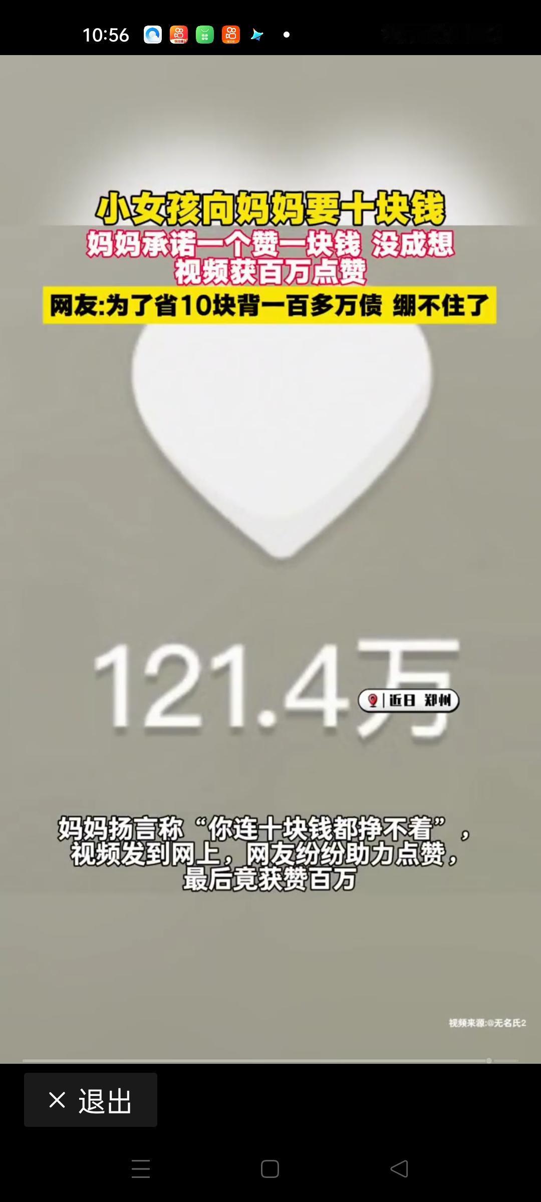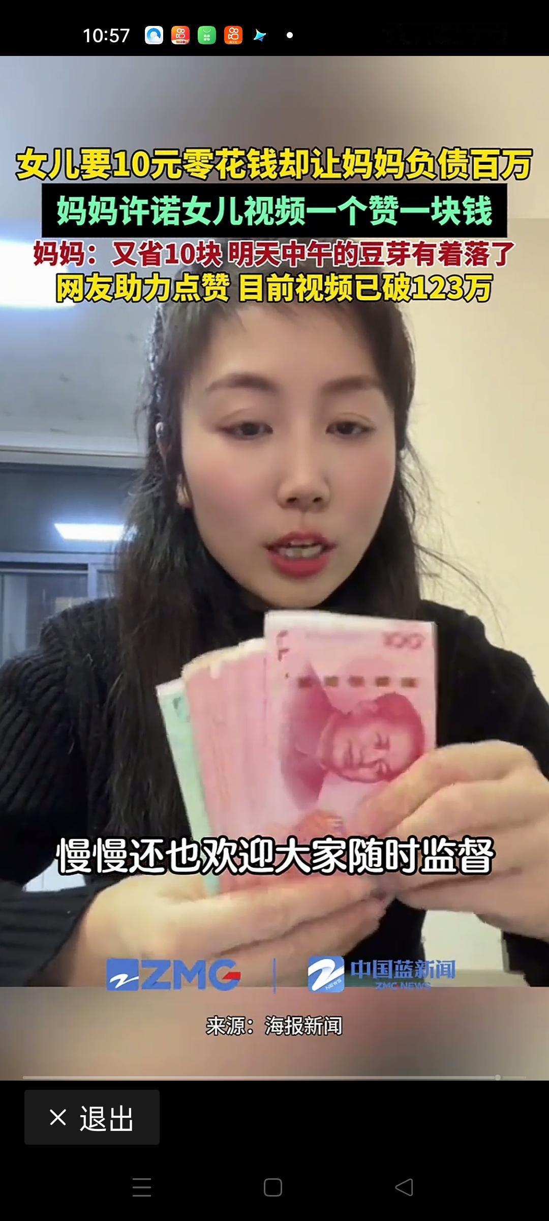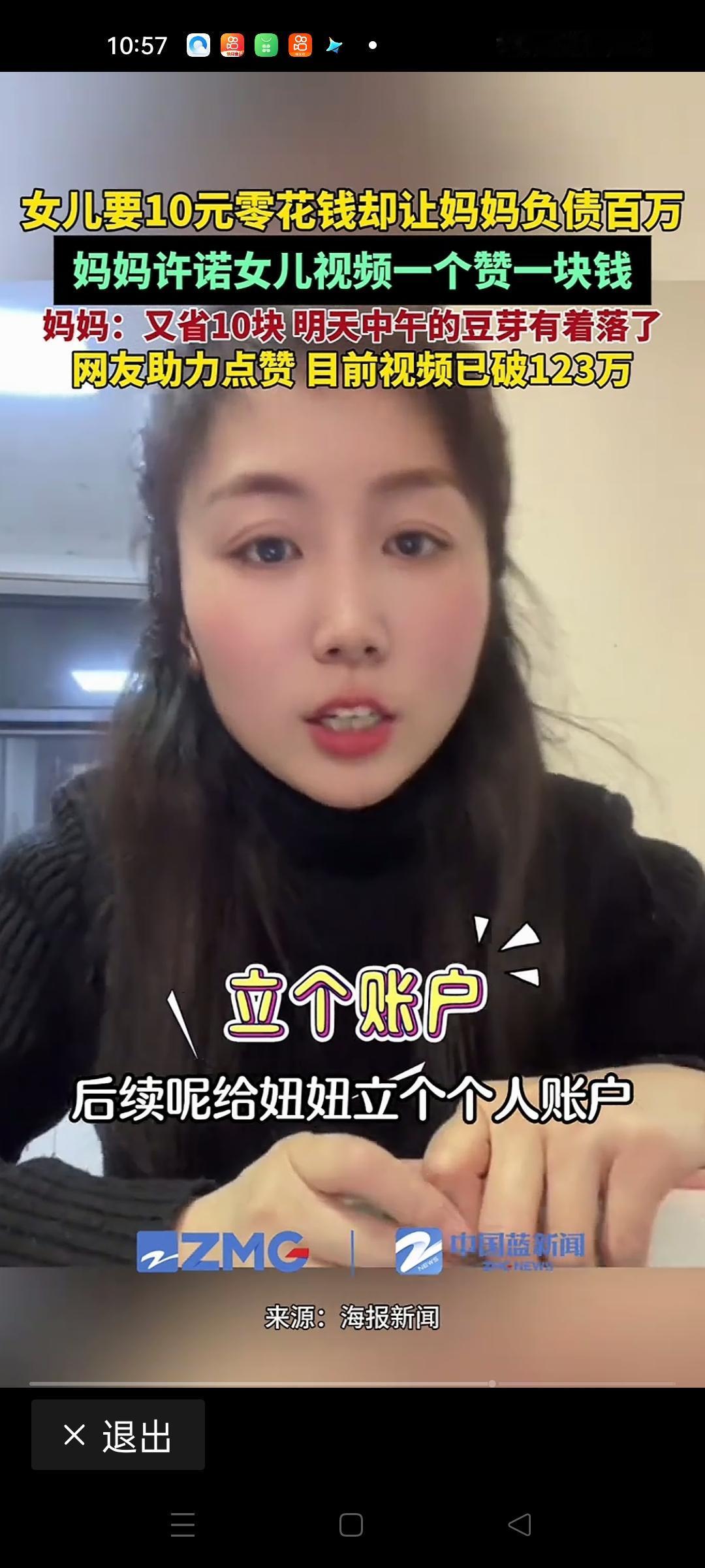 女儿向妈妈要10元钱,妈妈一时心软没有给,却让女儿帮忙拍个视频,许诺“点赞1元钱”。看似简单的交换,谁曾想,这个看似无关紧要的小请求,竟引发了一场令人瞠目结舌的“债务危机”。一觉醒来,妈妈发现自己竟然欠了女儿“百万”!这到底是怎么回事?背后隐藏的又是什么样的人性与社会现象? 故事的开端,似乎只是一场普通的“家长与孩子”的小争执。妈妈没有立即满足女儿的请求,而是提出了一个“变现”的办法——点赞换钱。很多父母都曾用“奖励”激励孩子,也许你我都曾用类似的方式,试图用一点点“利益”引导孩子。可是,谁能想到,这个看似天真的互动,竟然演变成了一场“数字债务”游戏。 这背后,折射出的是我们这个时代的“价值观迷失”。在社交网络和虚拟世界的影响下,点赞、转发、粉丝、流量,早已成为衡量“价值”的标准。而我们在无形中,是否也在用“点赞”定义自己的存在?用虚拟的数字,绑架了真实的情感?当一个孩子用“点赞”换取“奖励”时,我们是否也在无意中教会了他们:关系的价值可以用数字衡量?爱可以用“点个赞”来表达? 更令人深思的是,妈妈一觉醒来,竟然“欠”了女儿百万!这不是字面上的债务,而是一场关于“责任感”的寓言。我们在追求物质和数字的同时,是否也在逐渐丧失对家庭、对爱的理解?当“点赞”变成一种交易,我们是否也在逐步迷失了人性中的善良与真诚?这个故事提醒我们:关系的本质,不是用数字衡量的,而是用心去感受、去付出的。 或许,这个故事最核心的价值在于:它让我们反思,现代社会的“价值观”是否偏离了初心?我们是否在无形中,把亲情、友情、爱情变成了“数字游戏”?而真正的“财富”,其实是那些用心、用爱积累起来的温暖与信任。 看完这个故事,你是不是也在心里暗暗吐槽:我们是不是都在“数字债务”里迷失了?其实,生活最宝贵的,从来不是那些虚拟的点赞,而是我们在日常点滴中,彼此的理解与陪伴。让我们从今天起,学会用心去“还债”,用爱去“偿还”那些真正值得珍惜的人生财富吧。家长给钱方式 怎么和孩子建立双向沟通?