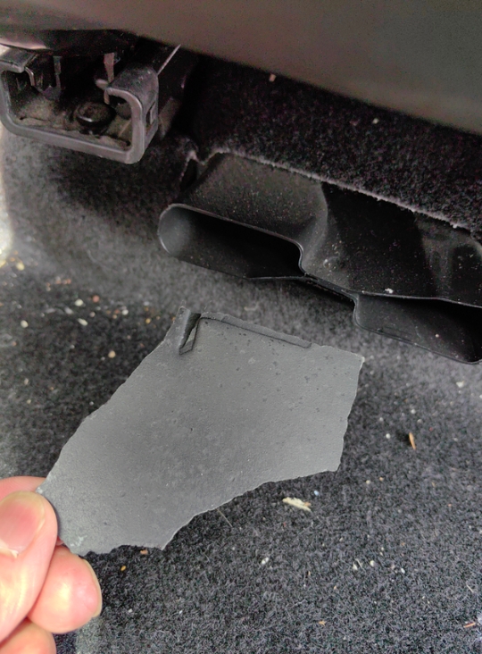 因为车辆太臭去售后了,拆开一看找到原因了,二排座椅垫的止震棉上面的一层胶老化了散发出非常难闻的刺鼻气味。这个味道让后排的人根本没法乘坐。座椅下空调口正对着,所以空调臭的原因也有它的份。奇瑞也算我当时比较信任的牌子,可是用这种配件,3年不到就这样让我们很伤心。 现在我要换新的止震棉,看标识还是那个零件商,这让我很犹豫装还是不装。现在已经拆开不装开不了车,想想没办法还是装吧,车主马上质保也过了,以后问题自己负责了。哎都是眼泪