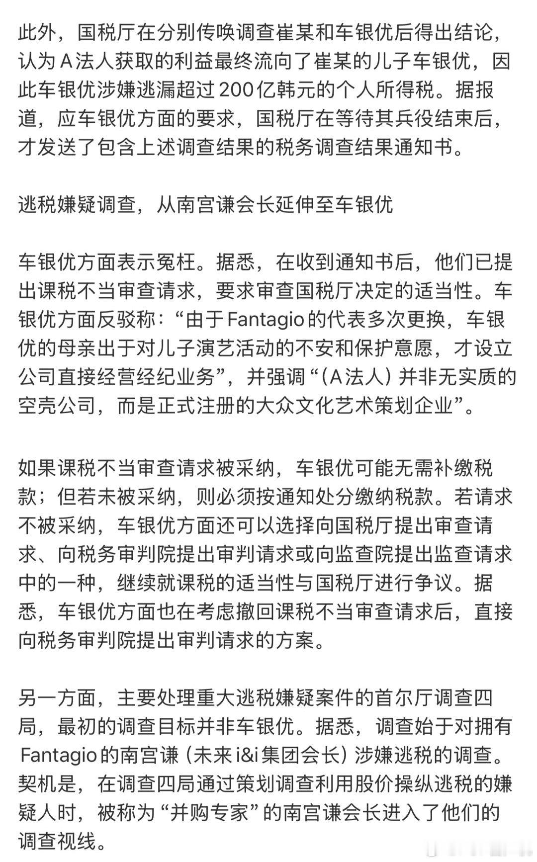 车银优涉嫌逃税200亿韩元车银优涉嫌逃税