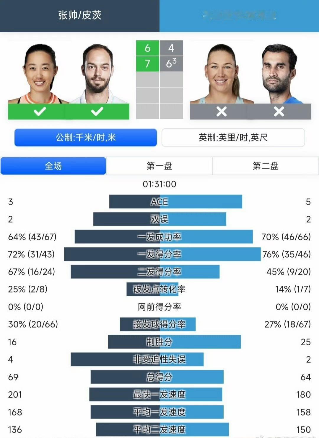 还得是帅姐,刚过完37岁的生日,在澳网混双女双首轮都取胜了。她说目标是夺冠…… 混双:张帅/皮茨6-4/7-6(3) 马丁内斯/斑布里,两人平分1.4万澳元。单打首轮过关最少22.5万澳元。 女双:张帅/梅尔滕斯6-4/6-2 科斯蒂亚/卡林斯卡娅,两人平分5.8万澳元。
